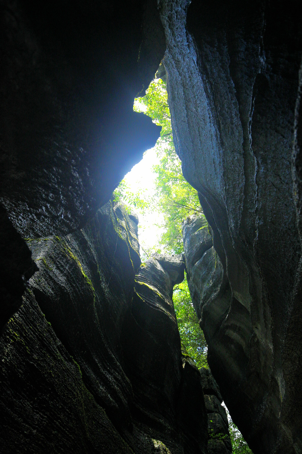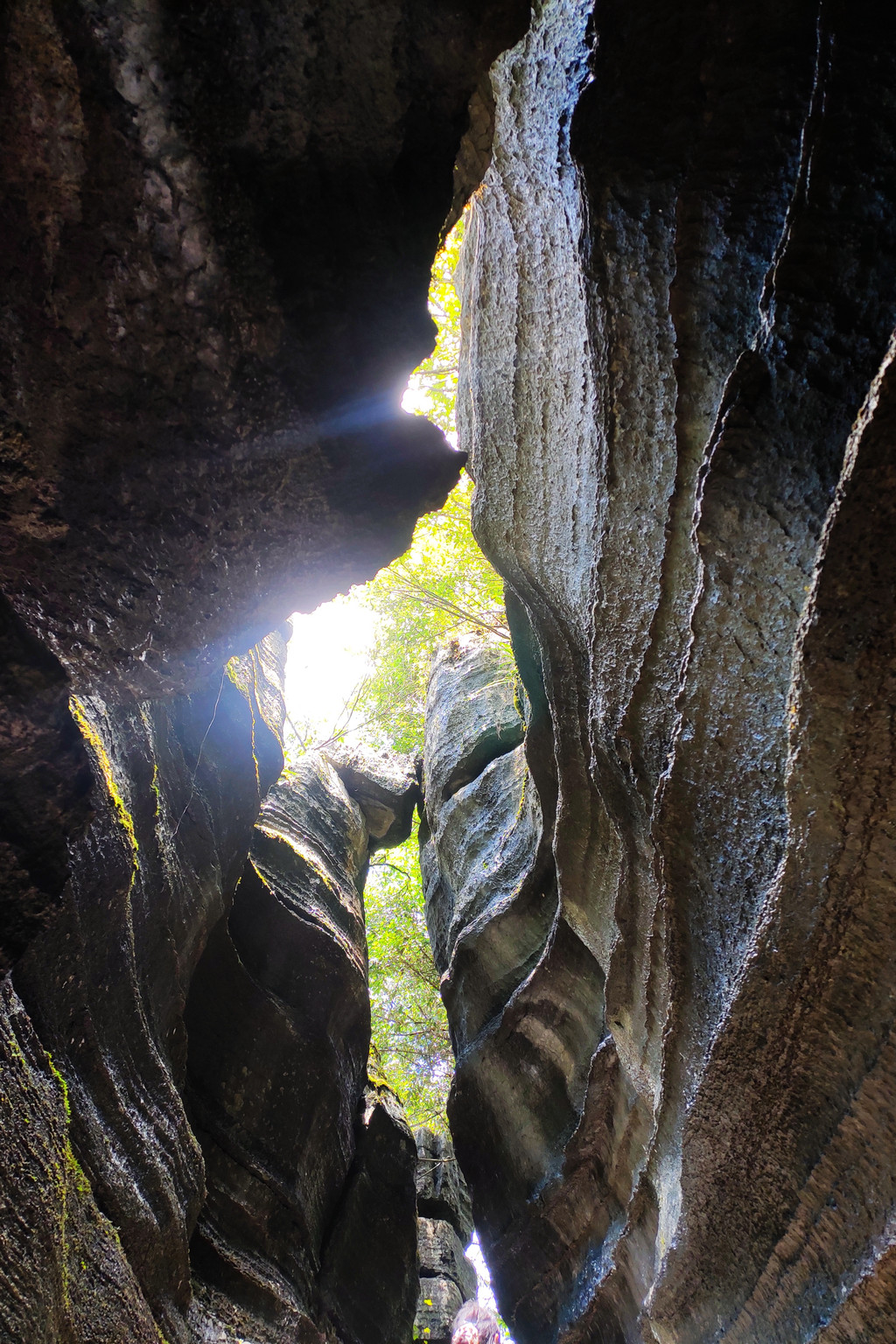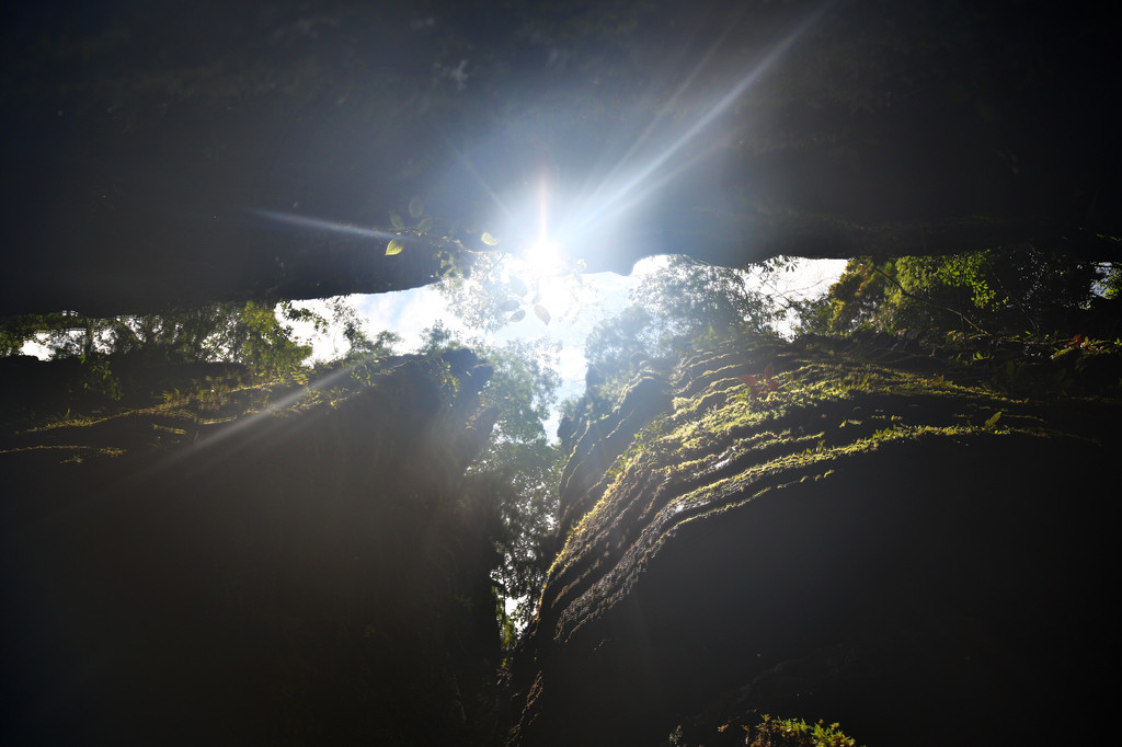 精华的犀牛沟,里面空间狭窄,石林高大,天空仿佛一线天,阳光照射下来,形成丁达尔光线,天空的缝隙仿佛一只展翅的雄鹰。