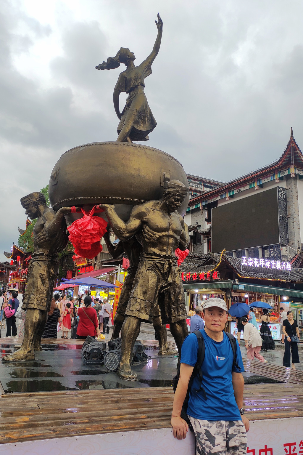 世间男子不二心,天下女儿第一城。中国恩施土家女儿城,位于湖北省恩施市区七里坪,离火车站大约8公里,作为全国第八个人造古镇,2013年正式对外开放,是AAAA级旅游景区,也是土家族、苗族文化聚集地。土家女儿城合理且精心的谋划了整体建筑风格,仿古与土家吊脚楼相结合,体现了土家族的民风民俗。主要包括女儿城景观石、盐水女神像、土家民俗博物馆、毕兹卡大街、最楚非遗文化街、幺妹街、小吃街、土家坝坝茶等景点。篝火晚会要晚上7:30才开始,我们大概逛了一圈后,就去“张关合渣”女儿城连锁店去吃晚饭。