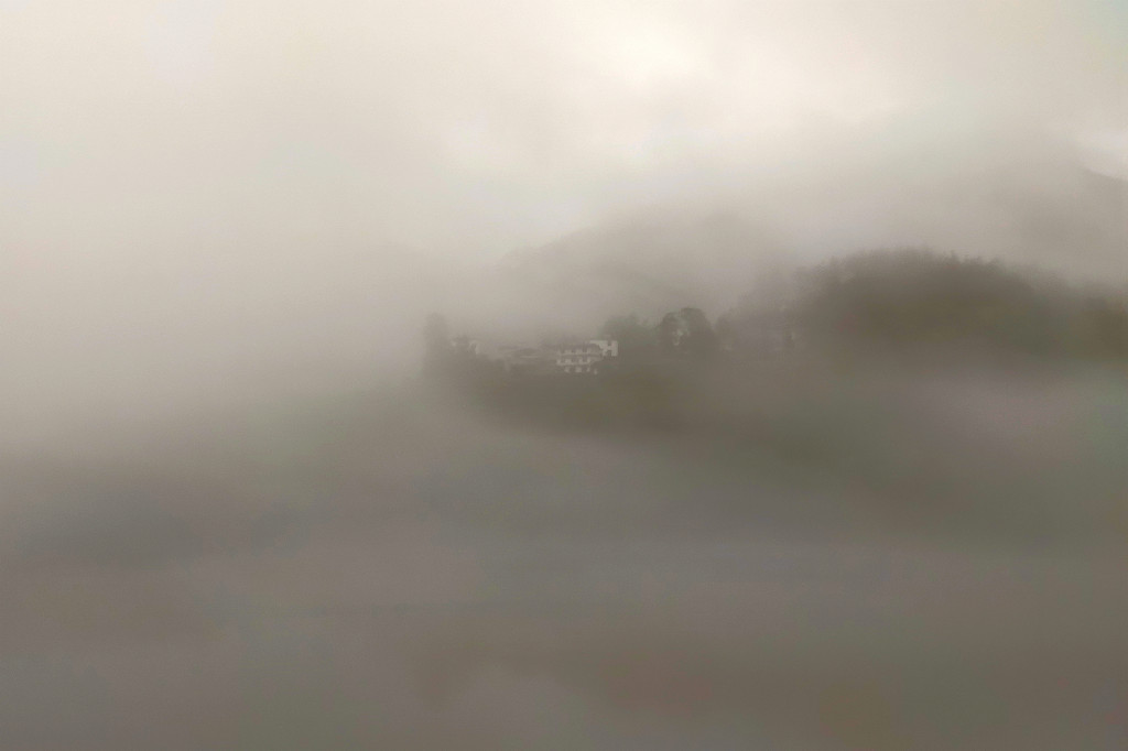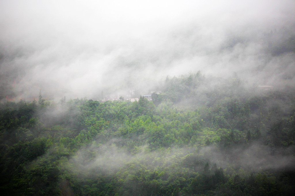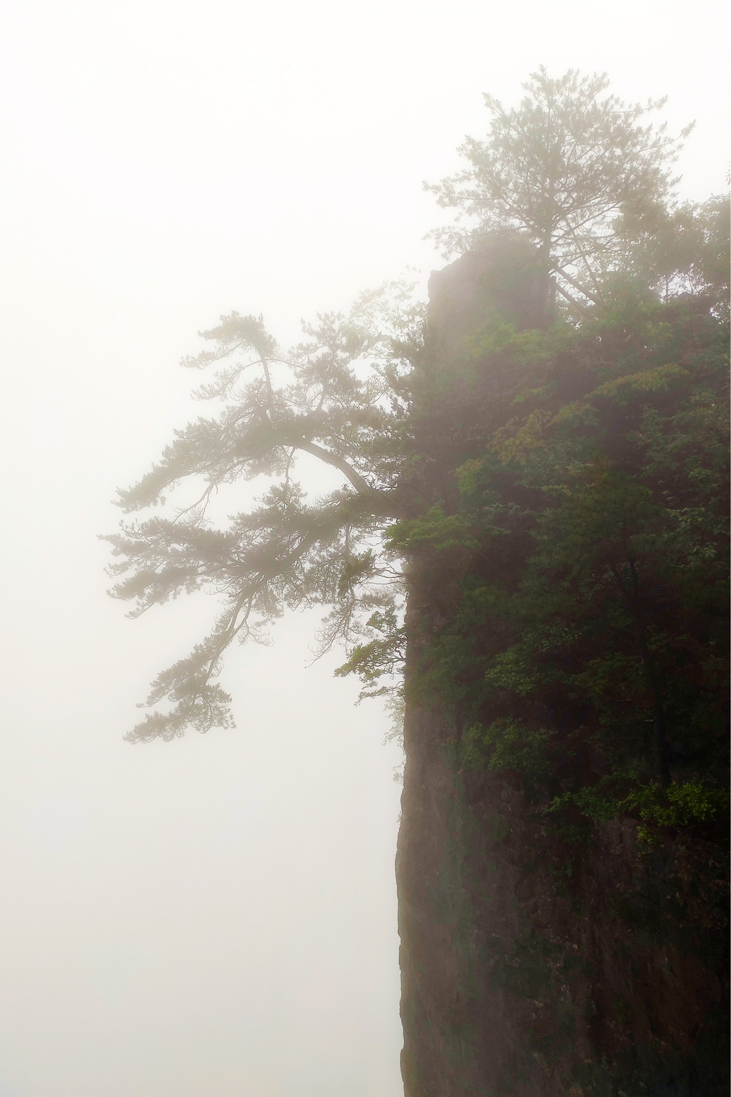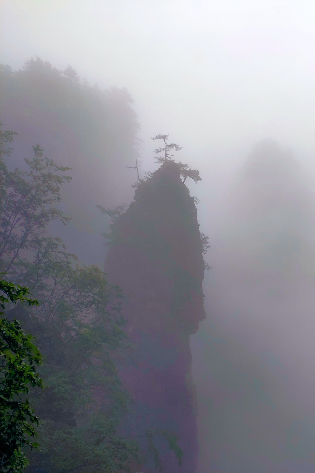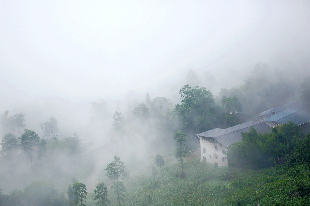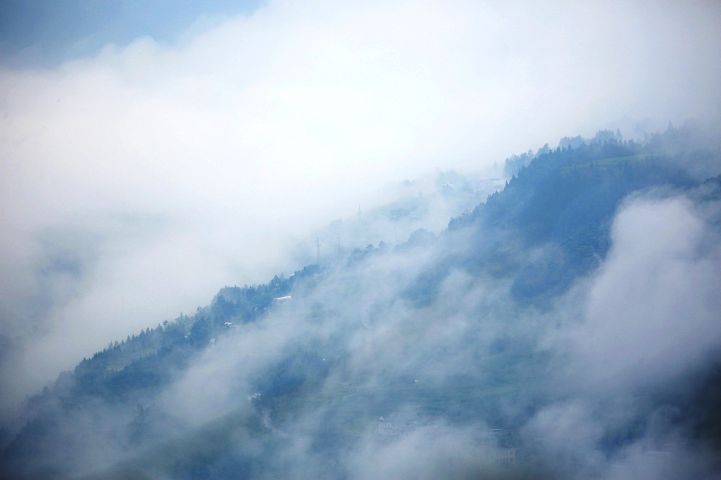 我们直接乘坐105元的上行索道来到了山顶的七星寨。今天运气不佳的是,雨一直很大,山顶四周雾气蒙蒙,几米开外就什么也看不见了。