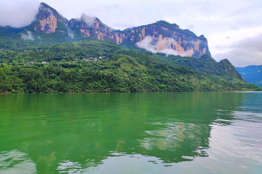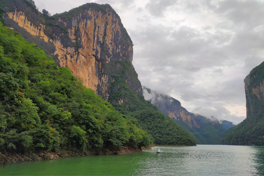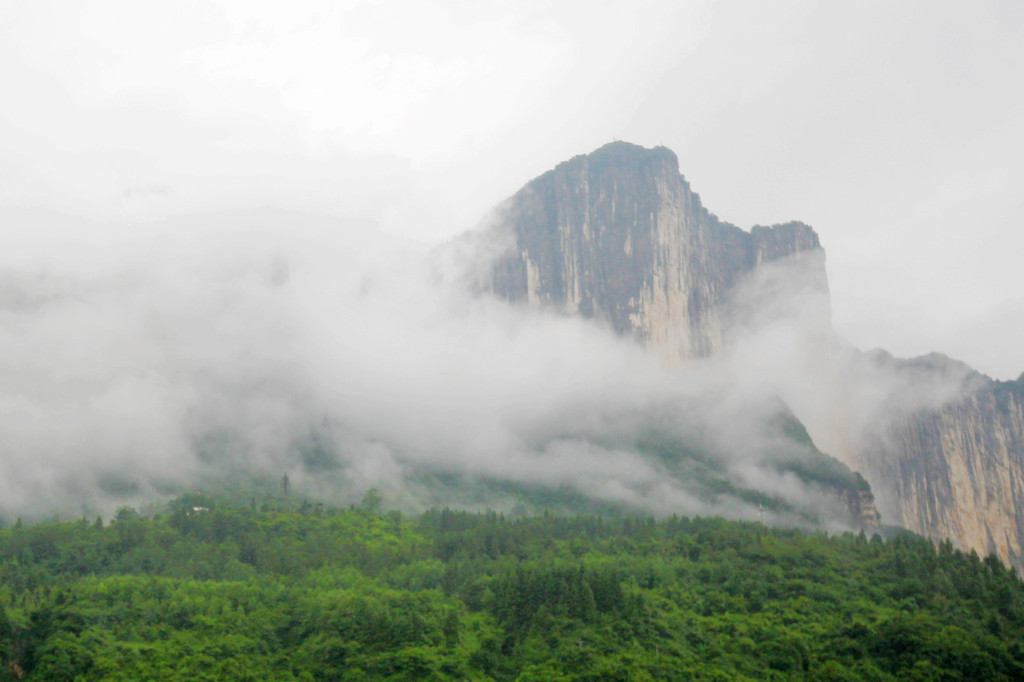 整个船游时间大约1个多小时,站在甲板上只见两岸青山云雾缭绕,有点“两岸猿声啼不住,轻舟已过万重山”的感觉。