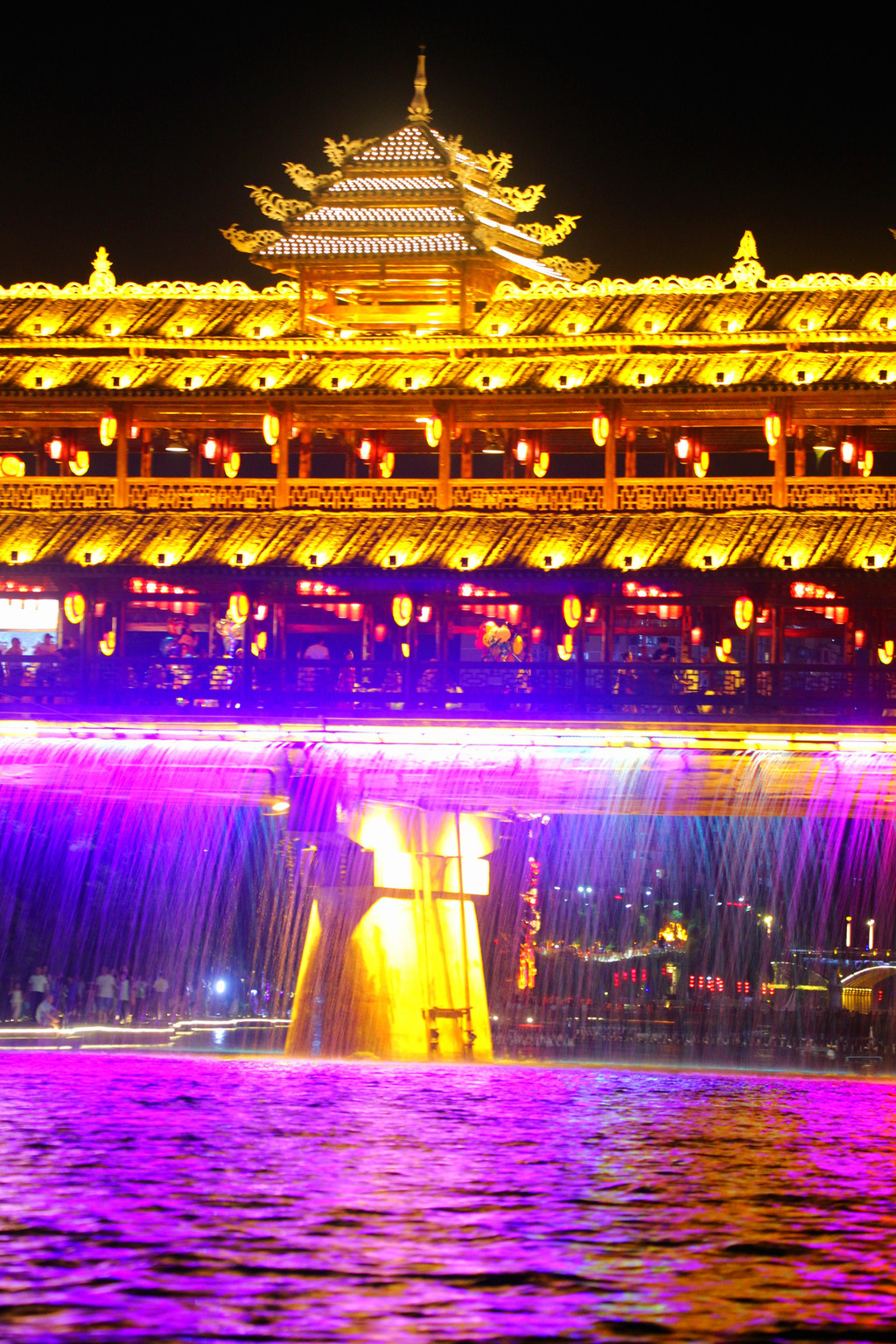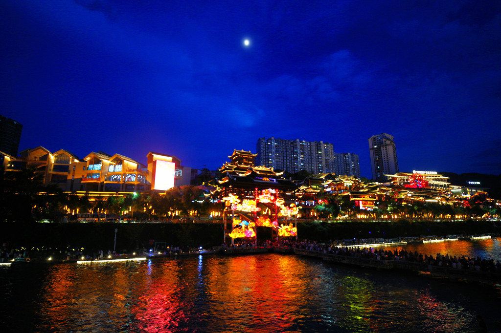 晚上8:30左右,我们乘船游玩贡水河。坐在船上,一边喝着茶水,一边吃着商家准备的零食,沿途欣赏着夜景,观看着文艺演出,一个小时很快就过去了。