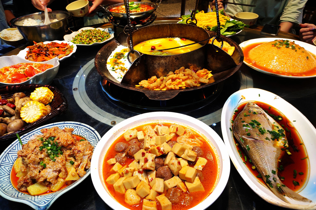 我们走到小蛮腰电梯处,实在没有劲再爬山了,于是花30元乘坐电梯返回了地面,然后沿着地缝旁边的道路走回了景区大门口,整体用时1.5小时,然后乘坐轨道交通返回了停车场。晚饭是旅行社安排的团餐,我们8~9人一桌,有大约10个菜,还比较可口,这里的富硒小土豆是一大特色,小土豆经过油煎后很香,我一口气吃了很多。