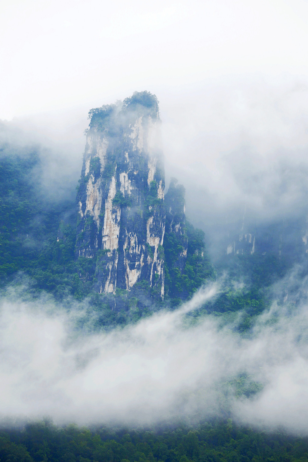 一炷香,高约150余米,最小直径只有4米,它风吹不倒,雨打不动,傲立群峰之中千万年,守护着这片神秘的土地。相传,这根石柱是天神送给当地百姓的一根难香,如遇灾难将他点燃,天神看到寥寥青烟,就会下凡来救苦救难,所以当地百姓称它为“难香”。