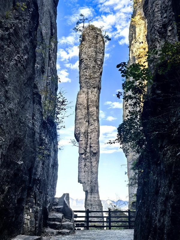 恩施大峡谷的一炷香石柱使人联想到三清山的巨蟒出山石柱。