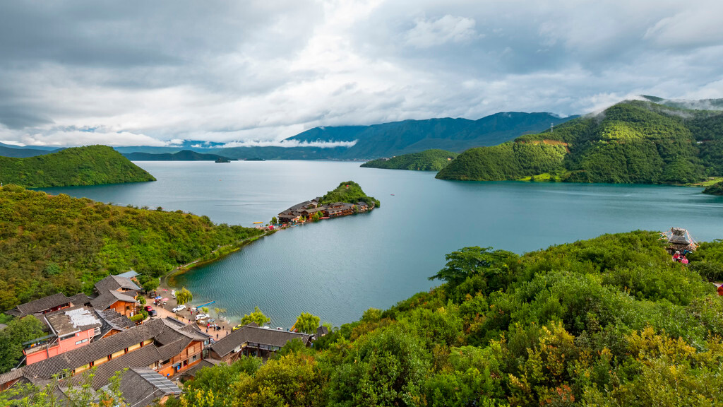 湖水给天上的云,做了镜子,映射其中,猪槽船停在岸边,或是摩梭人划行在湖面,眼前的一切,都美成了一幅画。