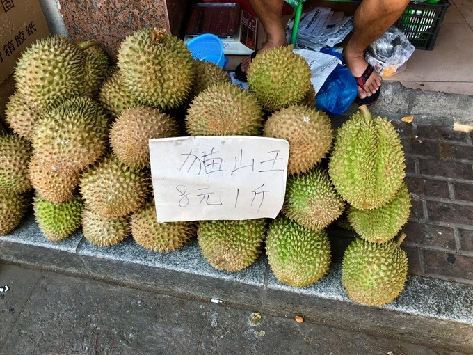 几乎整条街都有的猫山王榴莲和金枕榴莲,但是据说只有公称处那边的称是准的,当然公称处的价格听起来也会贵几块……当时我在路边买了一个金枕,然后问那大叔称准不准,说要拿去公称称,会回来的~事实证明,其实他给我的斤数是准的,可是当我再回头找那个商贩的时候,他已经不见了……这么心虚的对自己没信心吗? ……