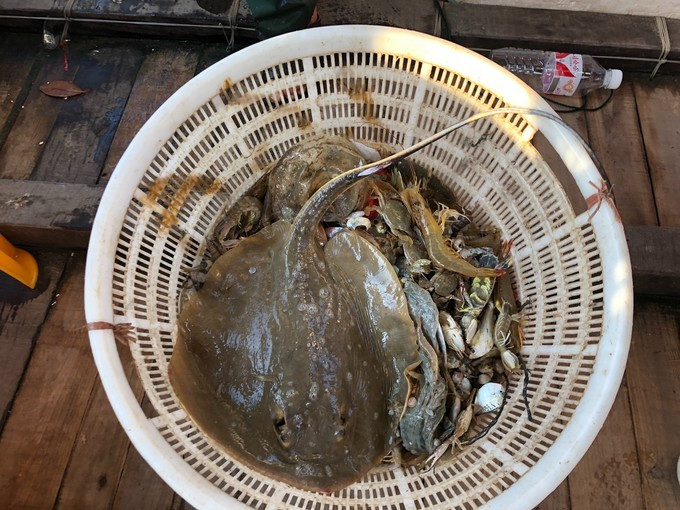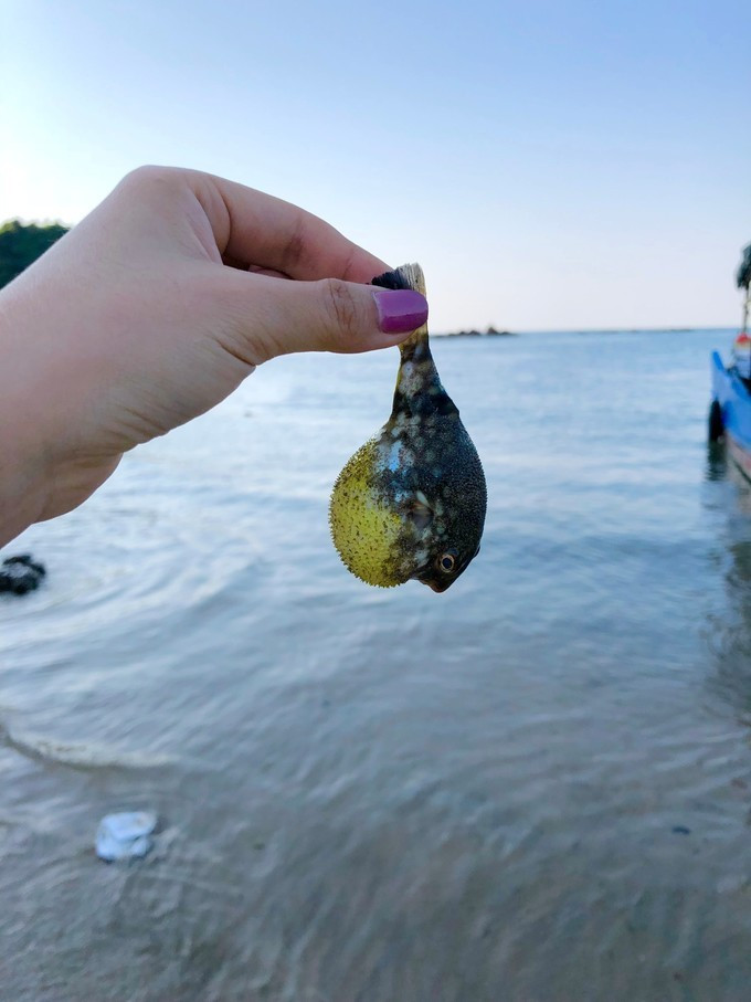 懵懵懂懂的补到了一条4斤多重的魔鬼鱼和一只不能吃的可爱的小河豚 ~