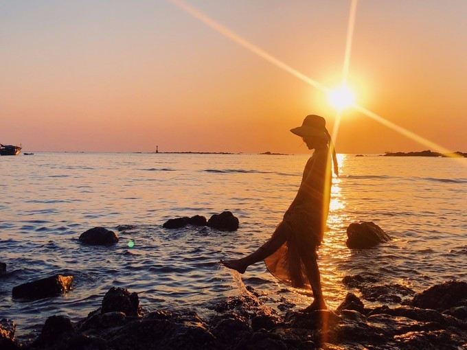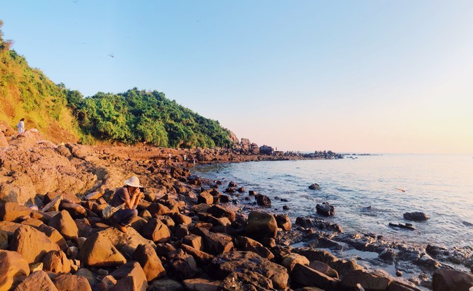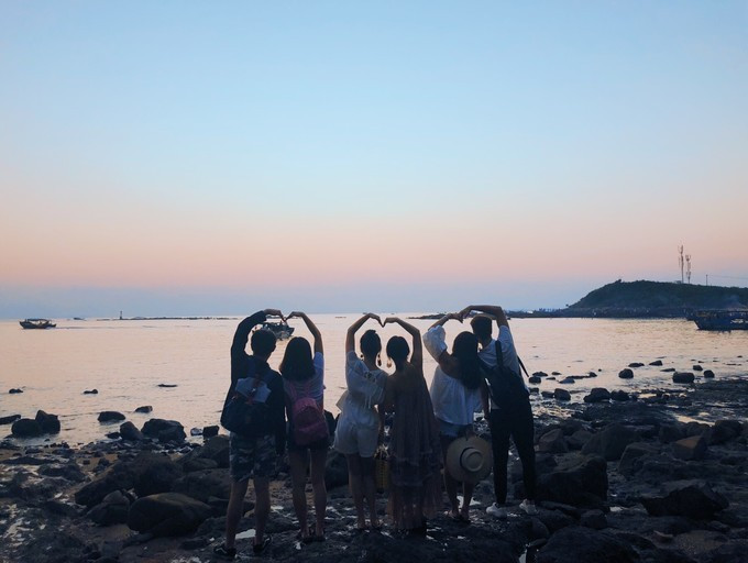 怪石滩只有中间一片是沙滩,两边都是奇异的怪石,东侧的石头形状更为丰富。在这里可以看海上日出、日落,傍晚时分,天际线湛红的夕阳染红海平面,可以看到零星的几对新人在石滩上拍摄他们的誓言。