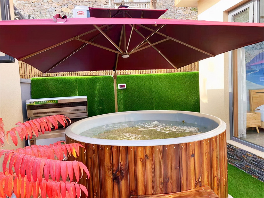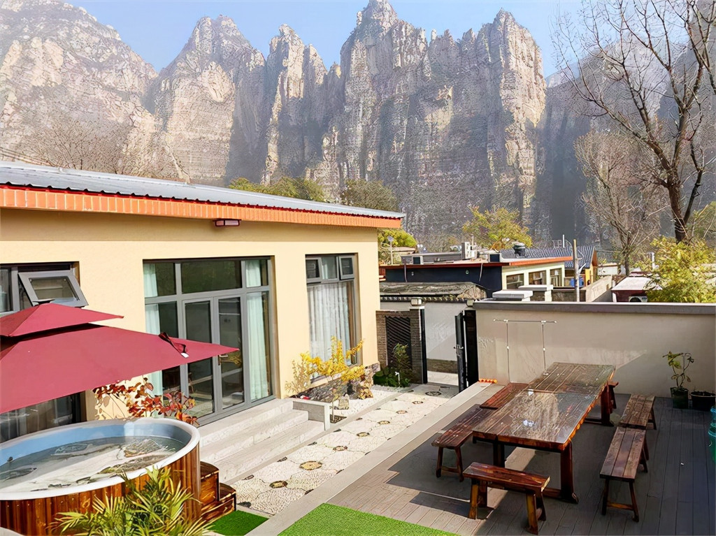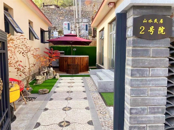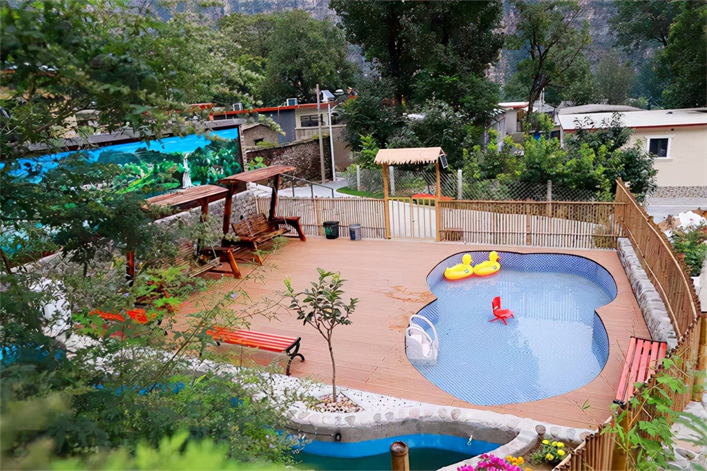 北京房山十渡山水民居私汤温泉小院民宿位于房山区十渡国家地质公园三渡民宿村,民宿分为前后三个房子来接待游客,小院门前设有户外休闲区:秋千、亲子游泳池、赏荷观鱼、或者在小院子里,招猫逗狗,玩花弄草。