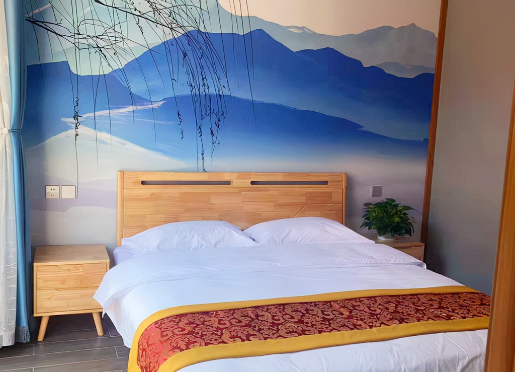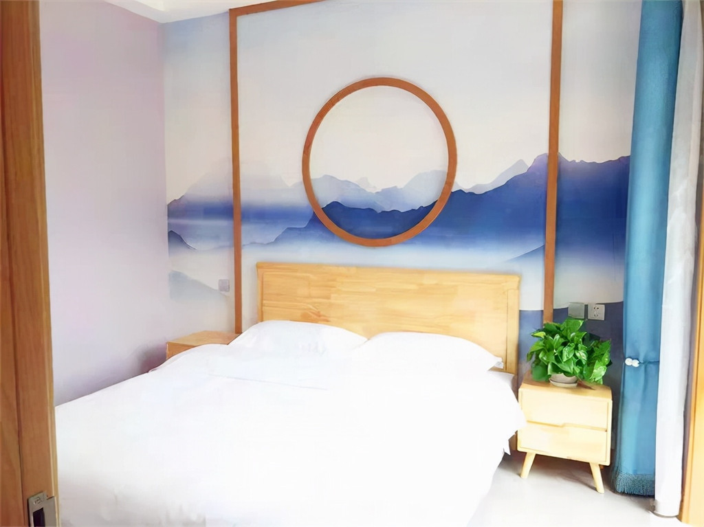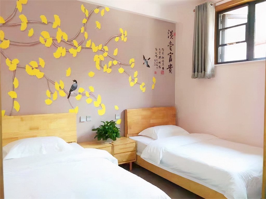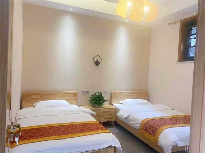 山水民居共计前后三栋小院,每栋小院大床2间、双床1间,可同时入住6人左右,卧室全景落地窗中央空调,配套设施齐全,不管是一人的独行侠,两人的小情侣,还是家庭聚会,好友组团,这里都有适合的房型可入住。