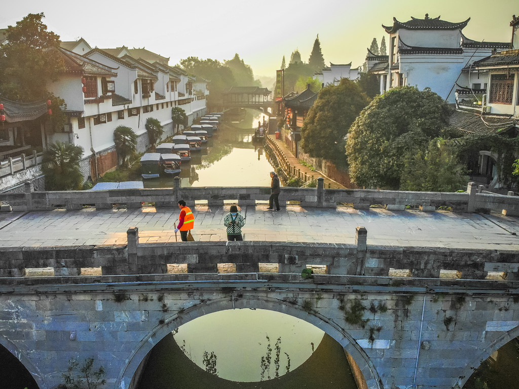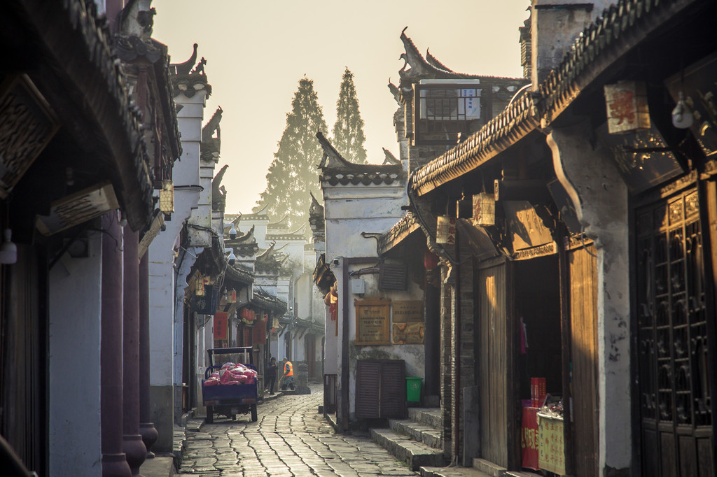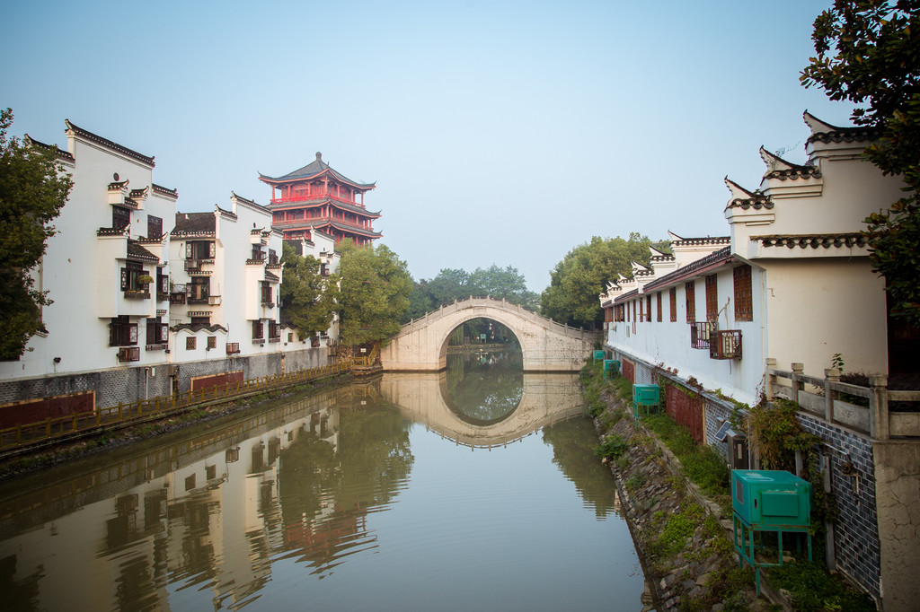 穿过粉墙黛瓦的斑驳民居,走过造型各异的百年老桥,光滑的石板路上不时的传来清脆的车铃,徽派的马头墙,在一缕阳光下,现代更加古朴典雅,让人更加流连忘返。