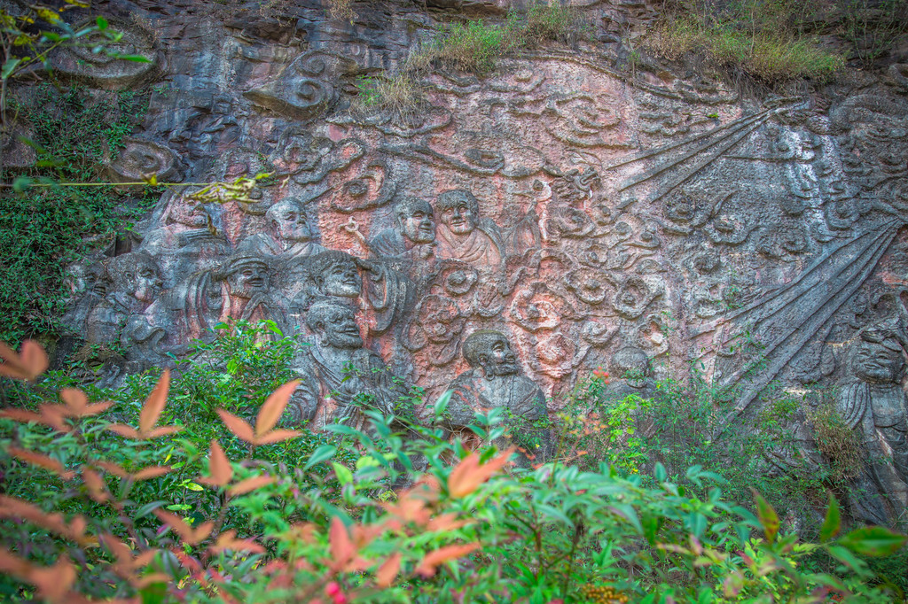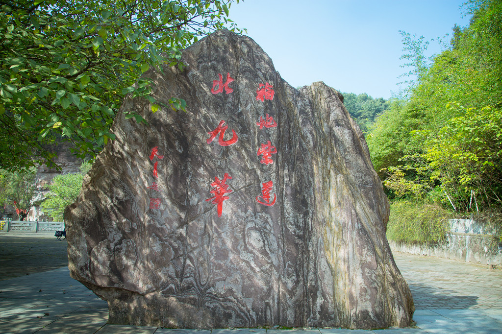 怪石,奇树,碧水,珍禽为紫蓬山的四大特色,在山顶还有一个三国时代就有的西庐寺,被茂密的丛林包裹着,颇有一些神秘,另外的景观还有“三世佛”、弥勒大佛、摩崖五百罗汉就,十分壮观。