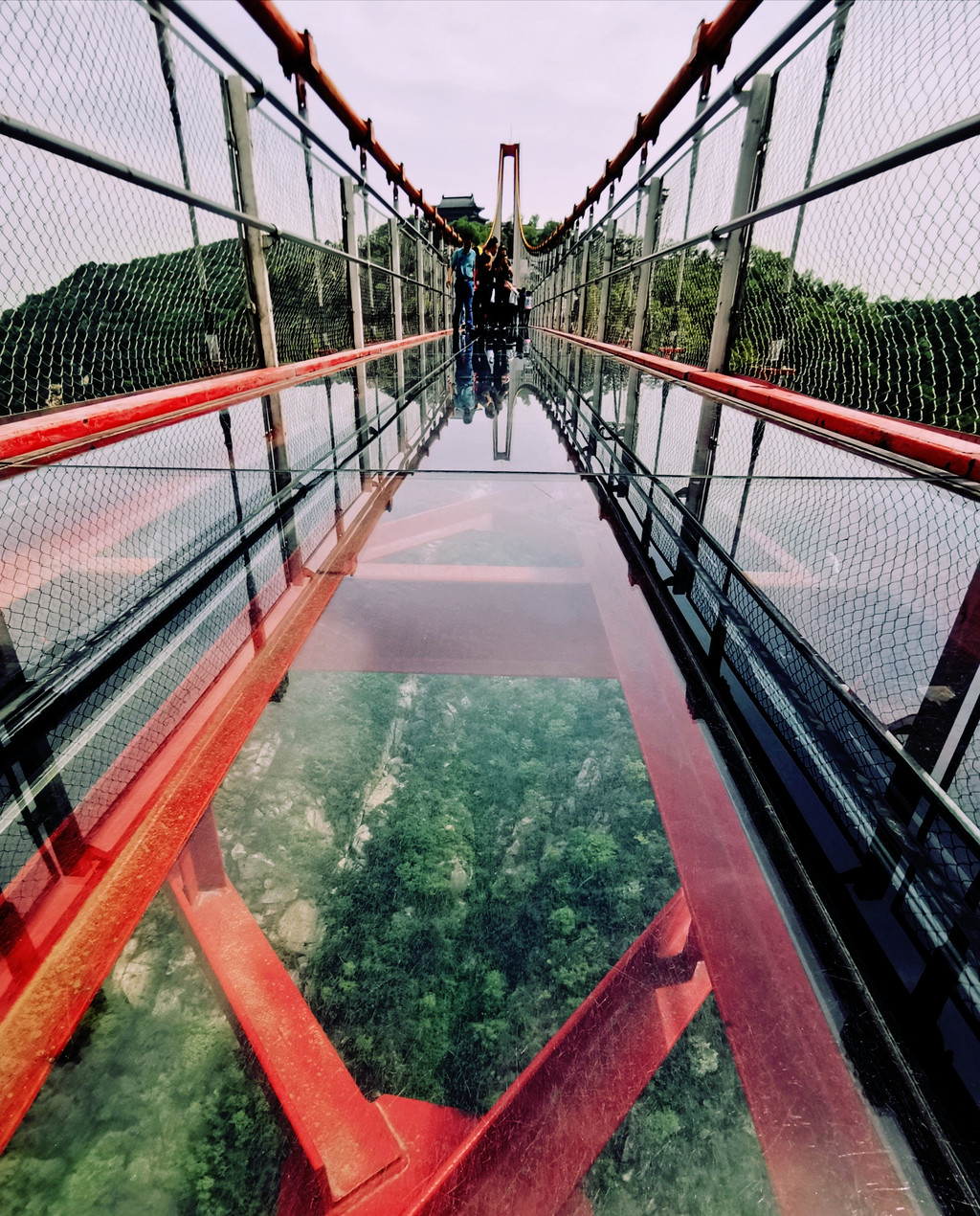 行走在中间的玻璃栈道上,惊险的刺激感充斥眼球和神经。