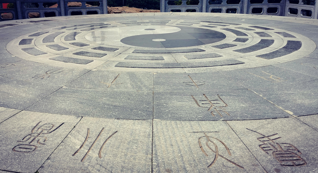 位于玉皇宫脚下的巨大太极八卦图,人可以在此图中间静坐。拍照很有感觉,若是你再穿件道士服,或许就更像那么回事了