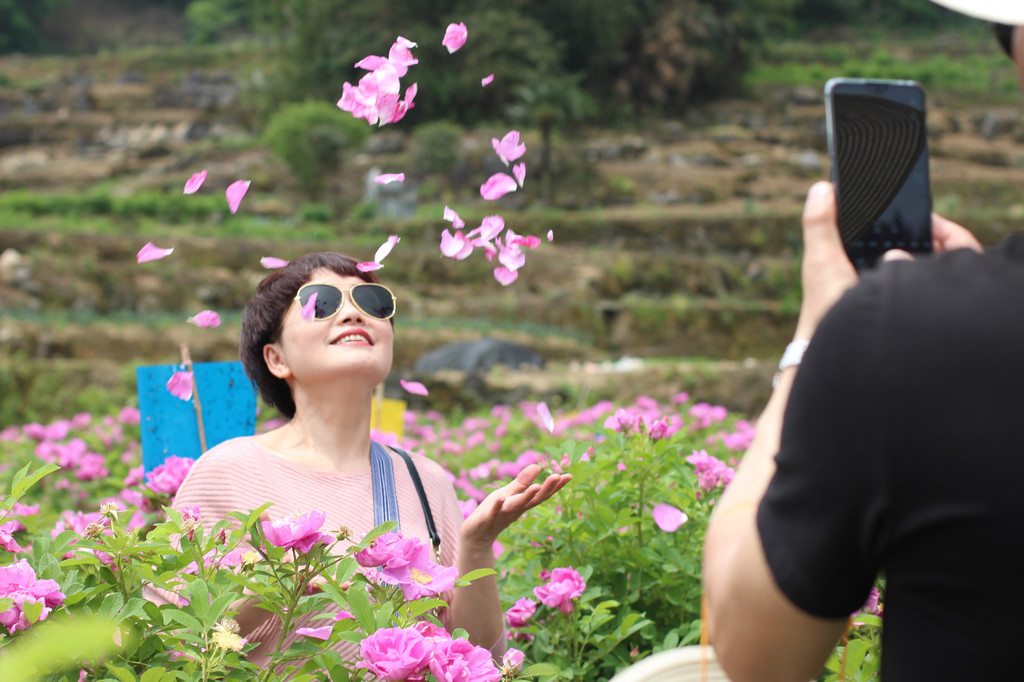 我去年5月份劳动节期间,跟我女朋友和她闺蜜自驾去的贵州遵义凤冈那边,5天时间玩的很尽兴。这期间那边有一个采花节,我女朋友特别喜欢花(女孩子嘛,都喜欢花、浪漫),到处都是玫瑰花、花香,感觉就在一个花海仙境里面,旅游的人也特别多,当地村民还说这些玫瑰花可以带回去泡澡,可以做玫瑰酱等等,他们也有自己的护肤品品牌(GIVEUROSE瑰缘玫瑰),护肤品里面的精油都是在这些玫瑰花里面提取出来的,还去了玫瑰基地看了一下提取精油流程,离开的时候还给我女朋友带了一套玫瑰系列的护肤品产品,到现在我女朋友都还在用。而且那边乡下真不是吹的,特别是早上,空气非常的清新,早晨起来都是满满的花香。