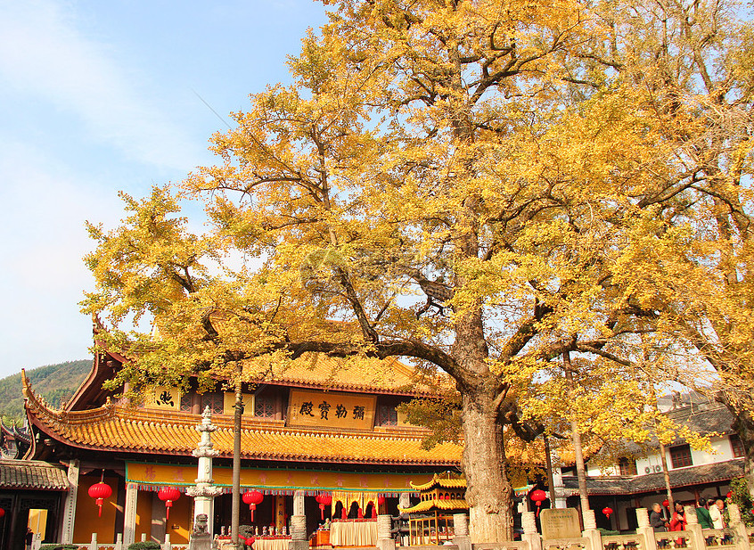 雪窦寺赏秋莫过于那两棵夫妻银杏树,这对“夫妻银杏”,饱阅千年雪窦寺屡遭劫难、五毁五建之沧桑,仿佛是雪窦山上两位修行已久、淡定自在的禅宗大师……据了解这两颗树龄大约在一千多年。