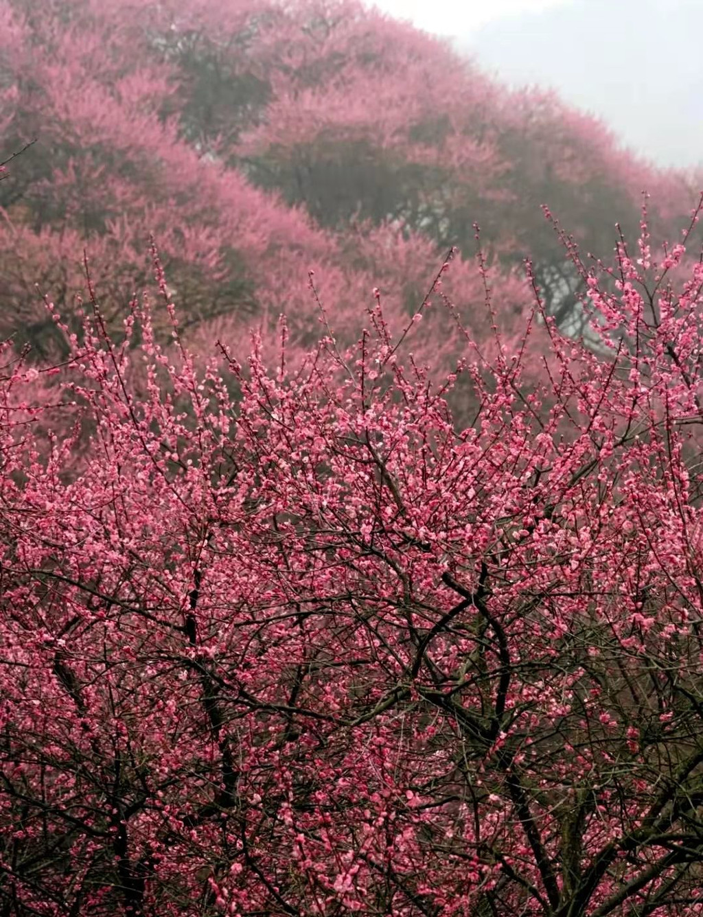 新建村春节赏梅是很多宁波人心中的执念,30多亩梅林,近千株梅花漫山遍野竞相绽放,山坡上一朵朵红色的梅花傲然枝头,艳而不妖,穿行在梅林中,阵阵淡淡的梅花香,令人心旷神怡。
