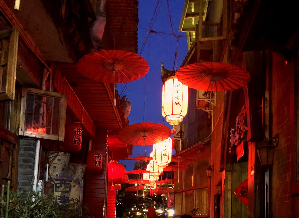 眼前突然闪现的绿光吸引了我的眼睛,我朝它望去,才觉是童年的萤火虫,可只有一只,孤单的一只在我眼前若影若现。似乎是突然的安静打扰了和谐的气息,我揉揉眼睛一时一片黑暗,只有一盏微弱暗黄的被电线杆缠绕的路灯忽闪忽闪,是我看错了,但我并没有继续前行。我告诉朋友,我好像看见了萤火虫,她听闻竟比我还激动,我吓得赶紧嘘的一声求她安静。一时间又一点绿光闪现,又闪现,愈来愈亮又渐渐暗淡下去。我确定我没看错,是的,是小时候见过的消失已久的萤火虫。我们都很激动。拿起手机赶紧抓拍记录下此刻场景。直到夜更深,更静,我们都已疲惫。朝着巷子里走去转角回到客栈凤安居,一日,结束。