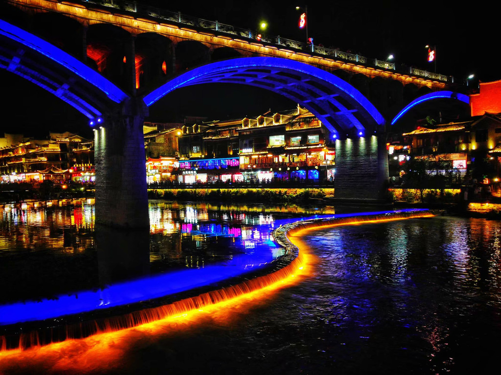 夜晚的凤凰古城别有一番韵味,夜晚才是沱江两岸最热闹最繁华的时刻。白天古色古香的小巷,有咖啡也有名茶,晚上灯红酒绿,自然也少不了音乐与酒。一到夜晚,凤凰古城就像羞涩的少女摘下面纱,化身一名热情奔放的女子,如同涅槃重生的凤凰冲上云霄,点亮整片星空。我被这般景色惹的如痴如醉,品着灯火摇曳下的音乐与酒,如梦幻般将我带去远方……此时脑海里不仅又浮想起一句话:“我明白你会来,所以我等。”