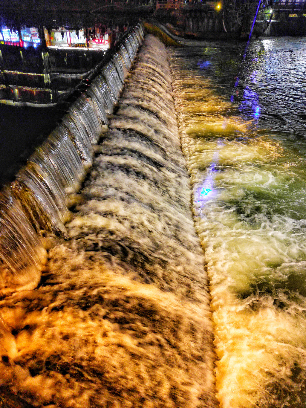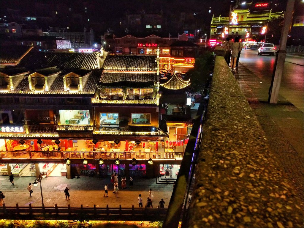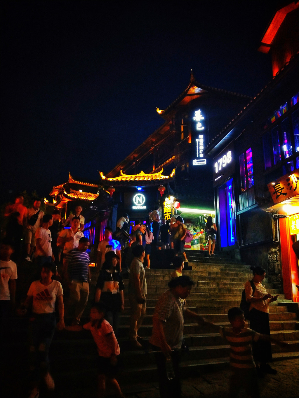 白天少有熙熙攘攘的人群,沱江缓缓的流水衬托着她的韵致。江风袭来,吹酥我的心,与朋友漫步在这里,踏在青石板上的脚步也变得轻盈。沱江的南岸是古城墙,用紫红沙石砌成,典雅而不失雄伟。真想撑一支长蒿漫溯沱江,将自己定格在画卷里。和朋友静静的待一个下午,互相不说一句话也觉得美好。有多少青年男女迷失在这里?又有多少迟暮的爱情这里见证……