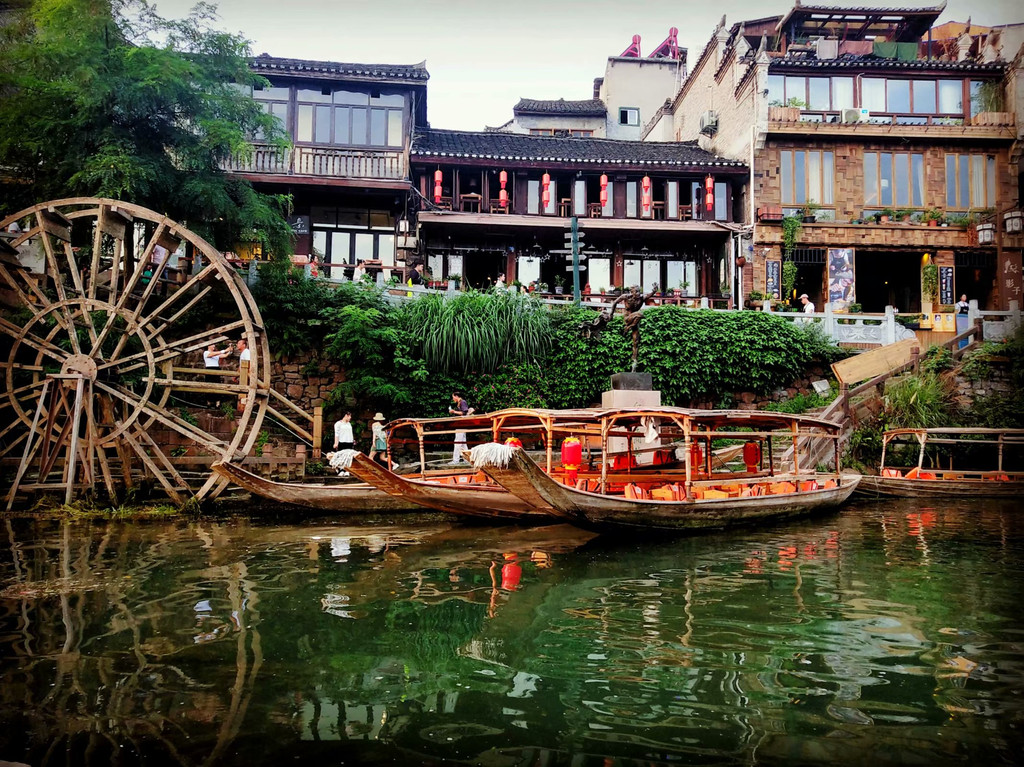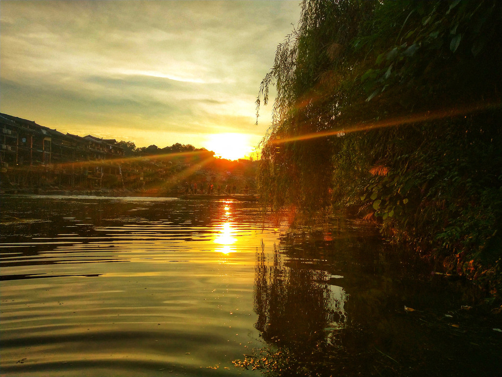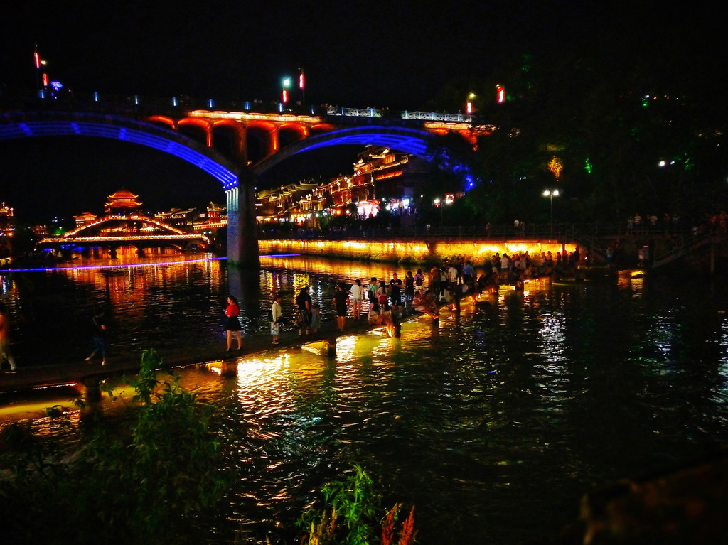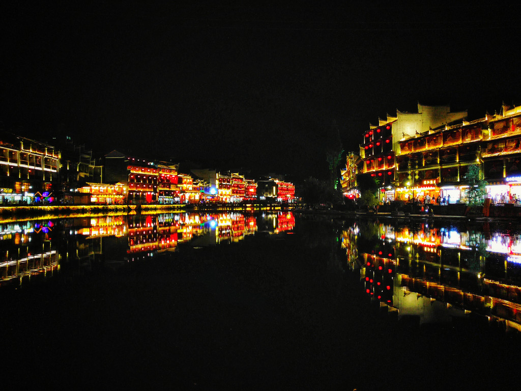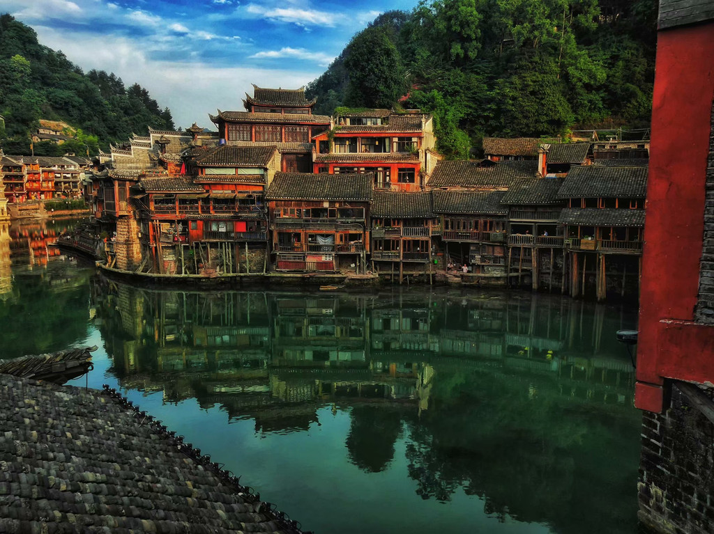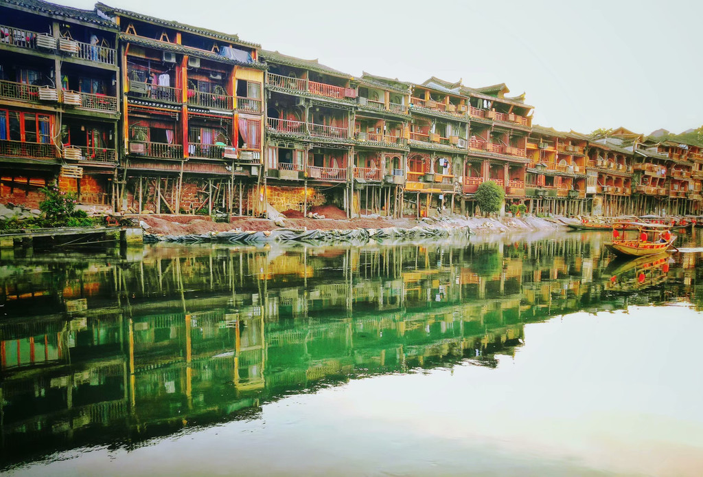 凤凰古城以她最纯真的民族本色赢得路易艾黎的一句盛赞,她是沈从文小说里的神秘桃源,也是黄永玉画作里的人间仙境。这一排排的吊脚楼与清澈平静的江面交相辉映,好似一幅唯美山水画,驻足在那里,仿佛置身于画作之中。将自己想象成天宫下凡的仙女,心旷神怡,一种远离喧嚣的感觉悠然而生。