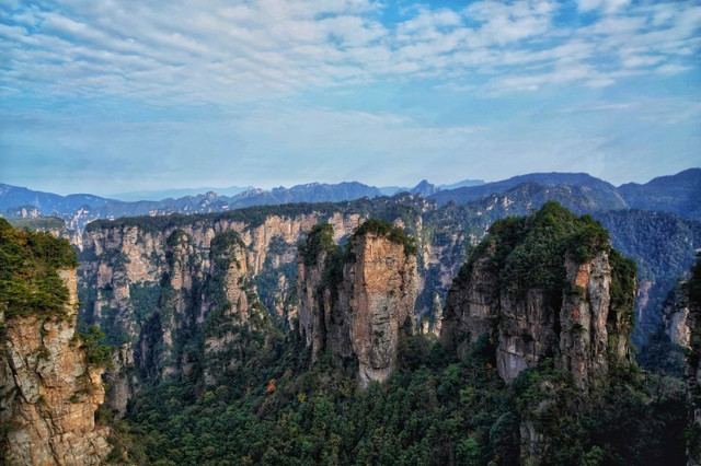 在凤凰古城呆了一天一夜后,见识过古城的夜景,下午就出发前往张家界了。从凤凰古城唯一的汽车站搭客车,耗时4小时,票价80元可到“张家界中心汽车站”;或者耗时5小时,票价100元可以直接到“武陵源汽车站”,都是同一辆车。区别在于,前者位于张家界市区,靠近“天门山景区”;后者在张家界武陵源区,靠近“张家界森林公园”。