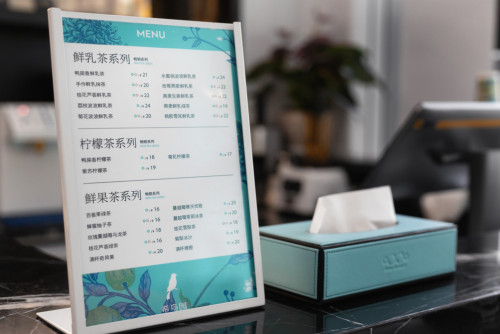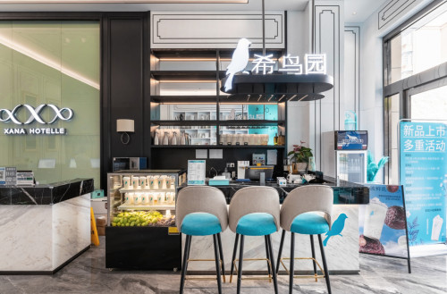 很快,我就感受到凤凰古城这家店和其他大多数门店最大的区别,是增设了一个希鸟园茶饮区。听酒店入住专属管家COCO的介绍,原来希鸟园的概念来源于为所有入住者打造一个属于彼此的心灵后花园,这里的所有茶饮都有着精致的包装,而希鸟园的标志,就是一只优雅的希岸蓝鸟儿静静的站在枝头。