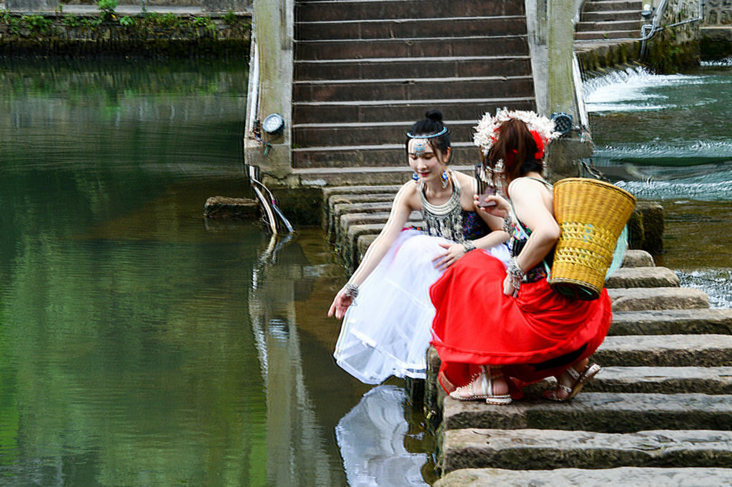 试想一下,夕 阳西 下,微风习习,走在弯弯的桥面上,你那心旷神怡的感觉,好美啊!白天听潺潺流水,夜晚听蝉叫蛙鸣,远可望上游的“雾桥”、“风桥”,近可看“云桥”风姿,啊,好美的一副诗情画意的写意图!