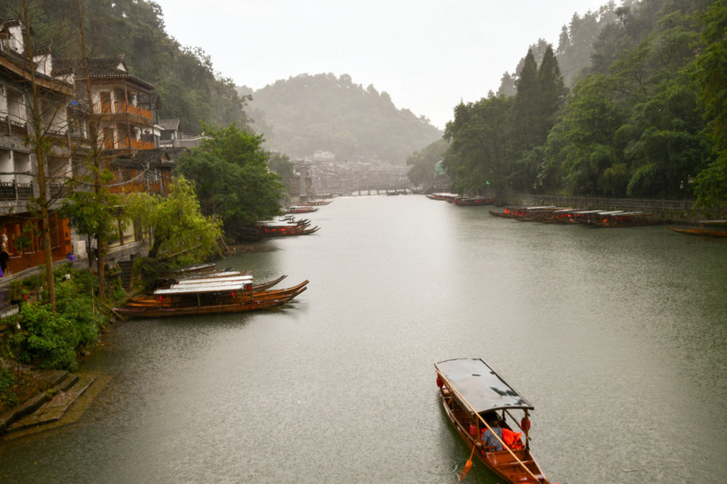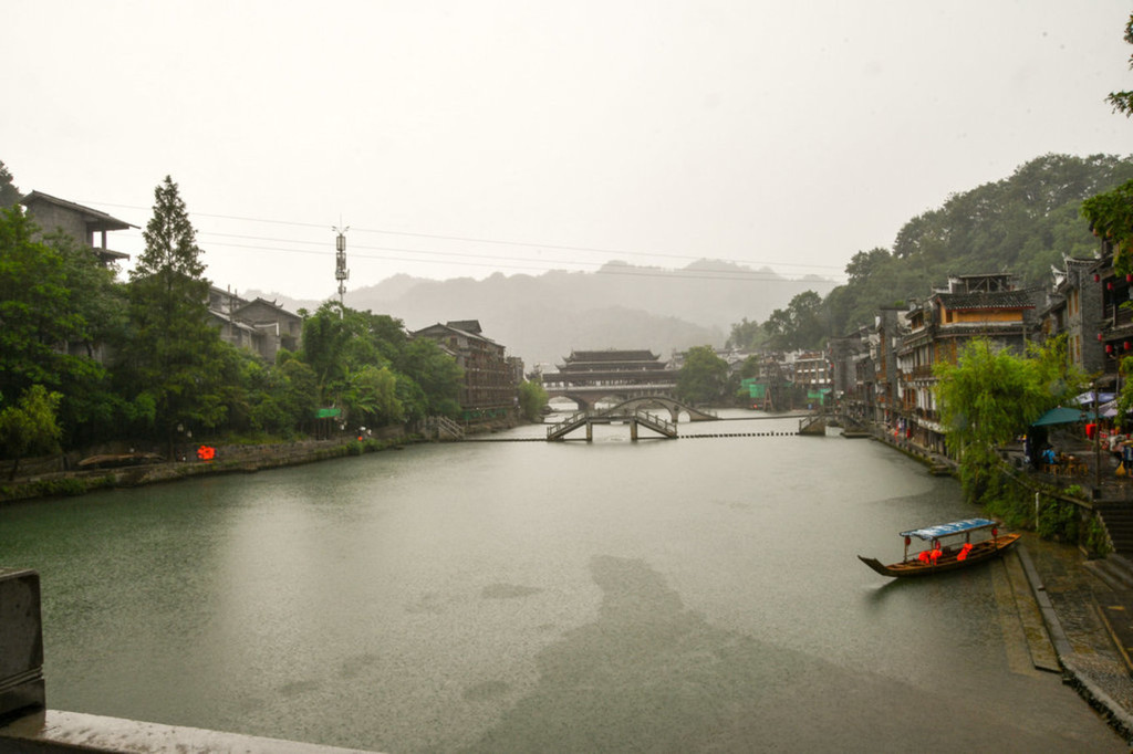 雨给沱江披上一层朦朦胧胧的面纱,雨水间升腾而起的雾气,有人说,雨中的凤凰,其实才是最美的
