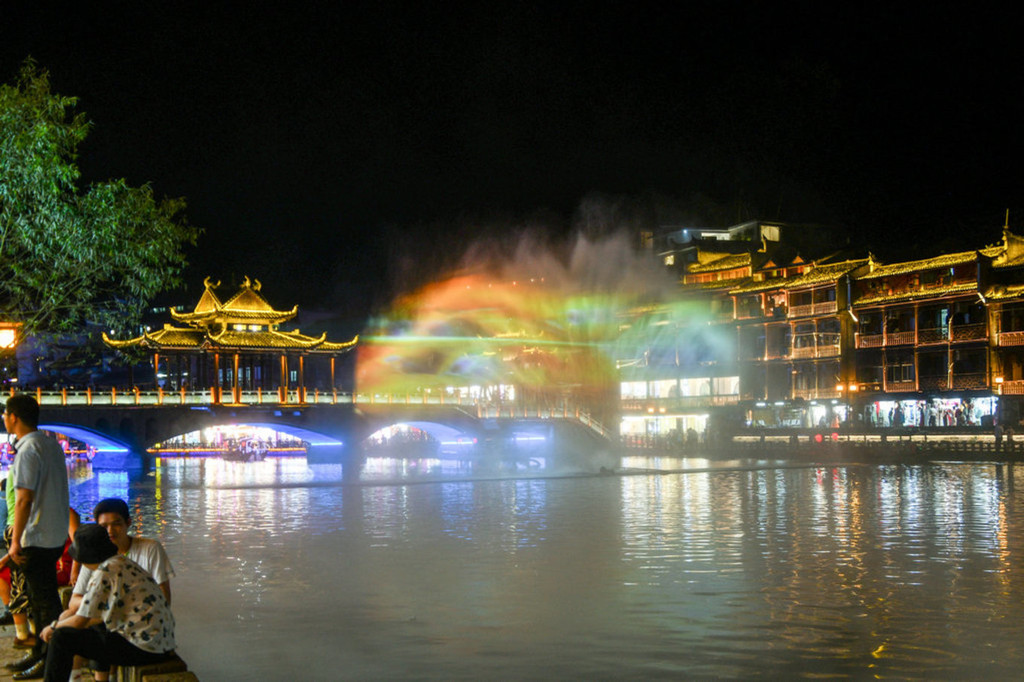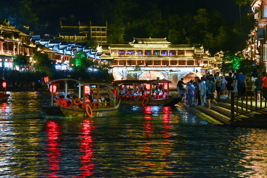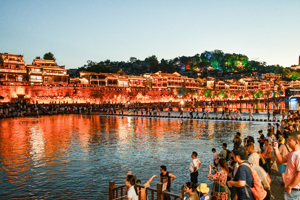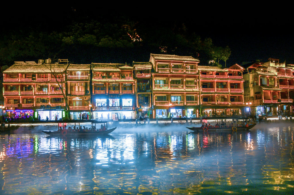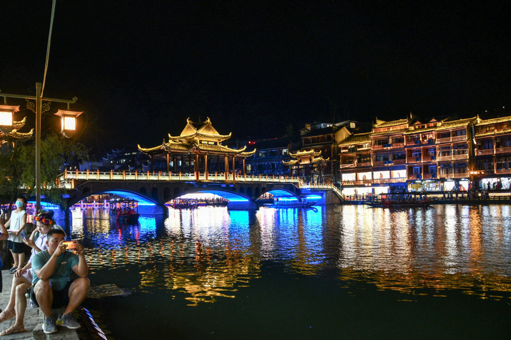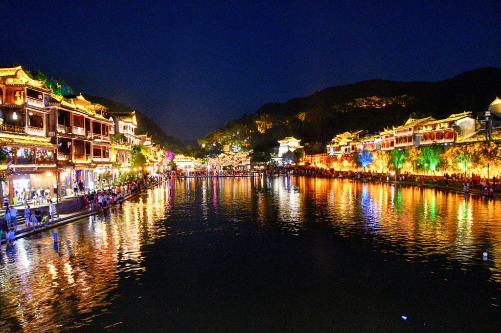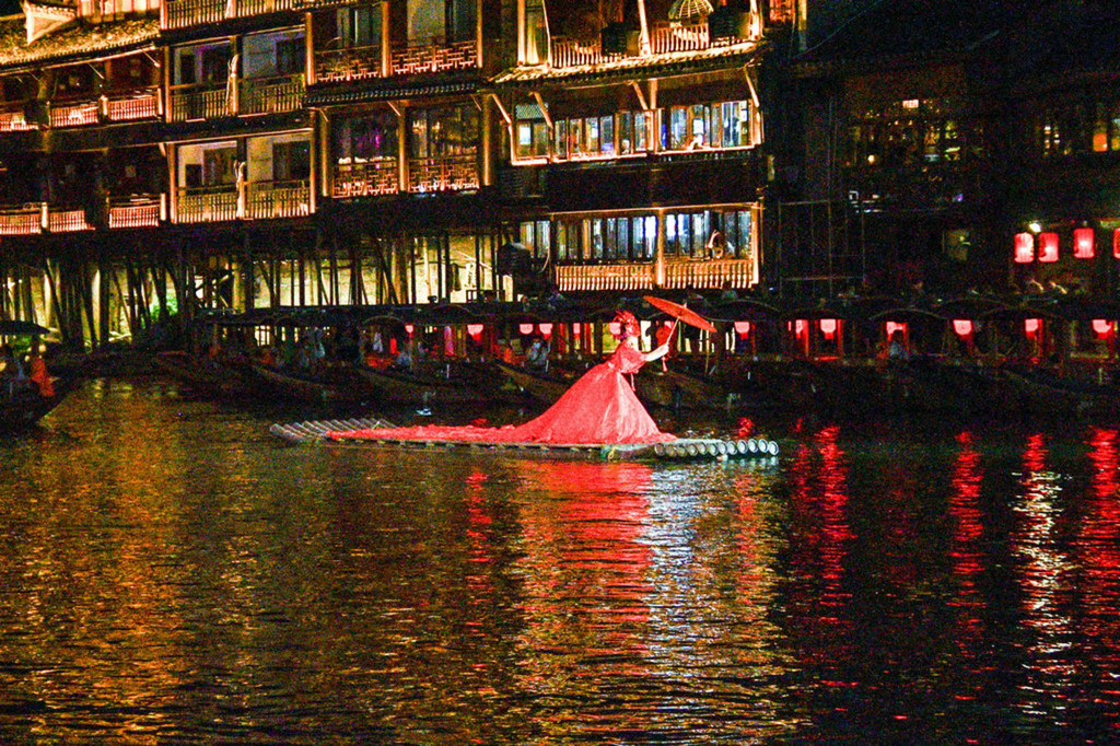 凤凰的夜也不寂寞,安静的可以坐在江边看人放河灯,爱热闹的可以去看看民俗表演,