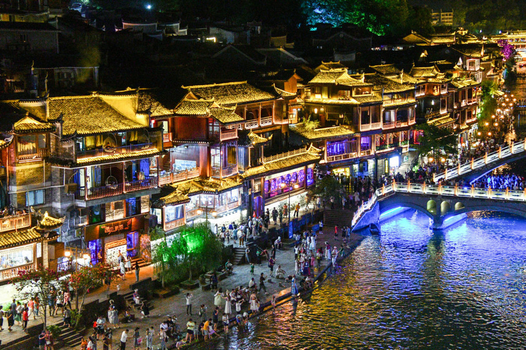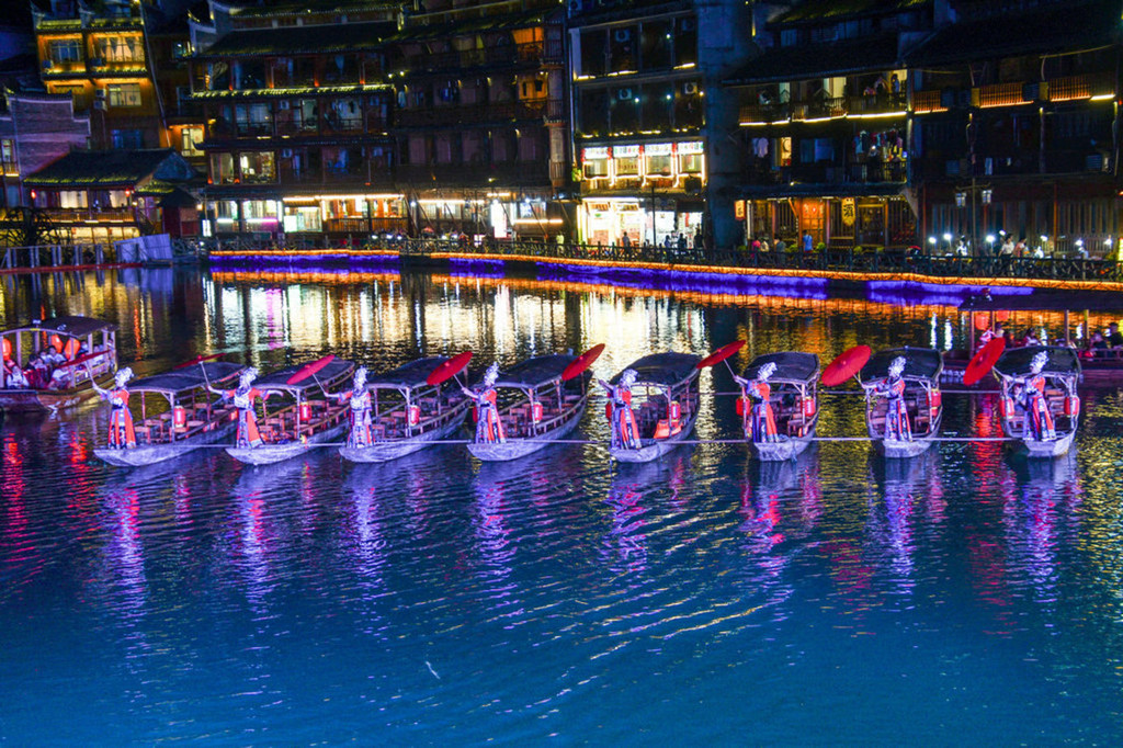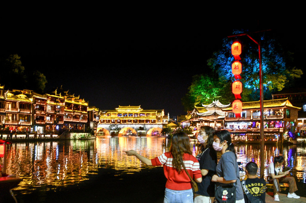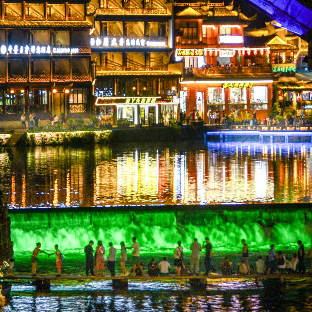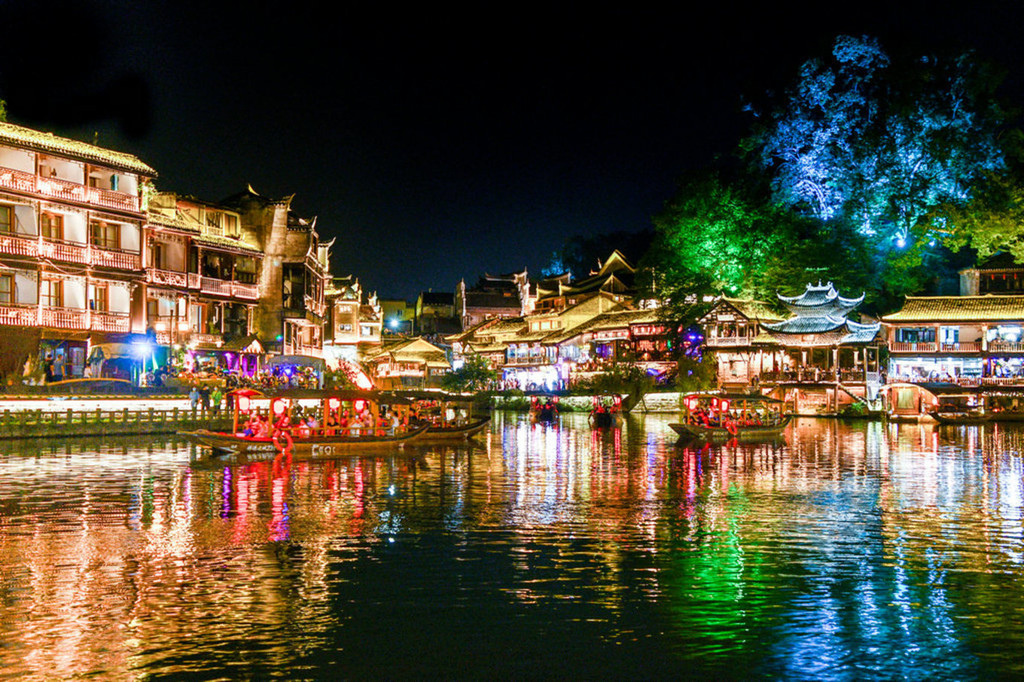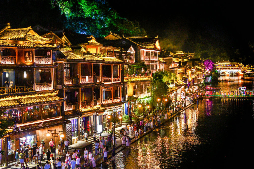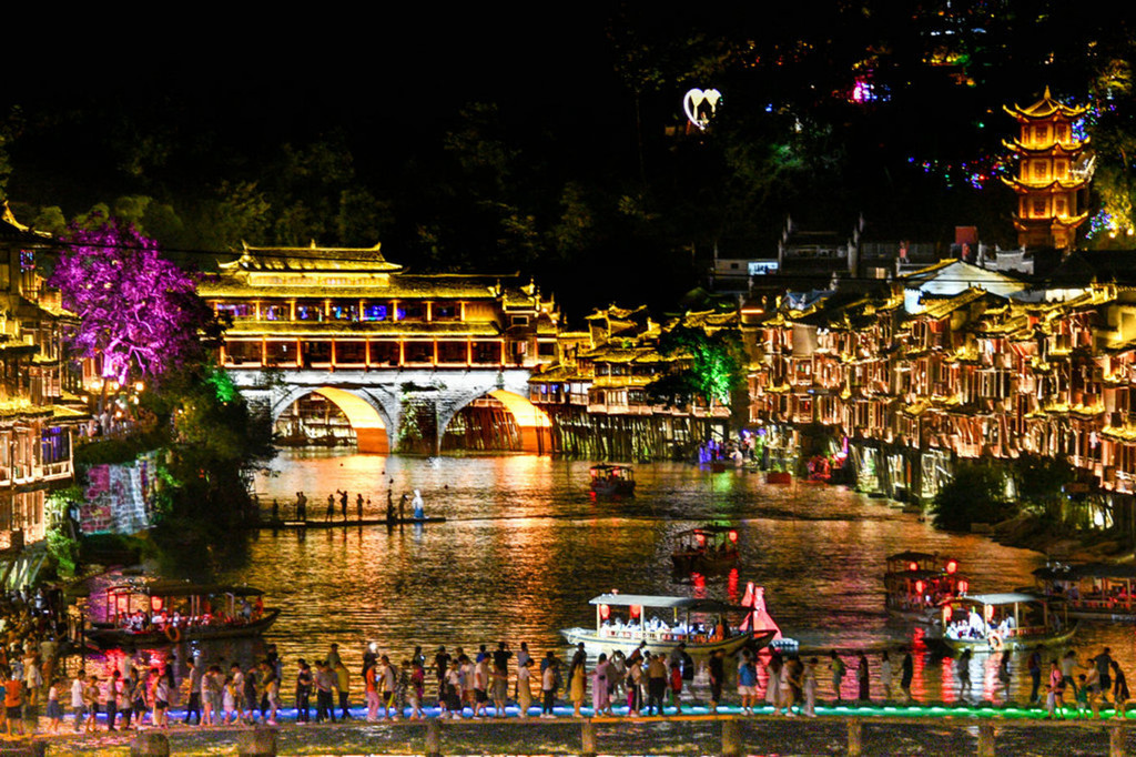 凤凰的夜也不寂寞,安静的可以坐在江边看人放河灯,爱热闹的可以去看看民俗表演,