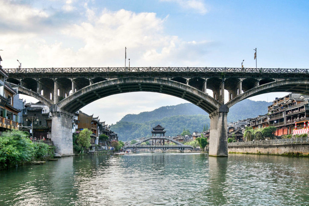 它是一座公路桥,连接着南华门与江北的交通要道,与下游的虹桥遥遥相望。南华桥上车来车往、人流穿熙,似是 凤凰古城 最繁忙的一座桥。