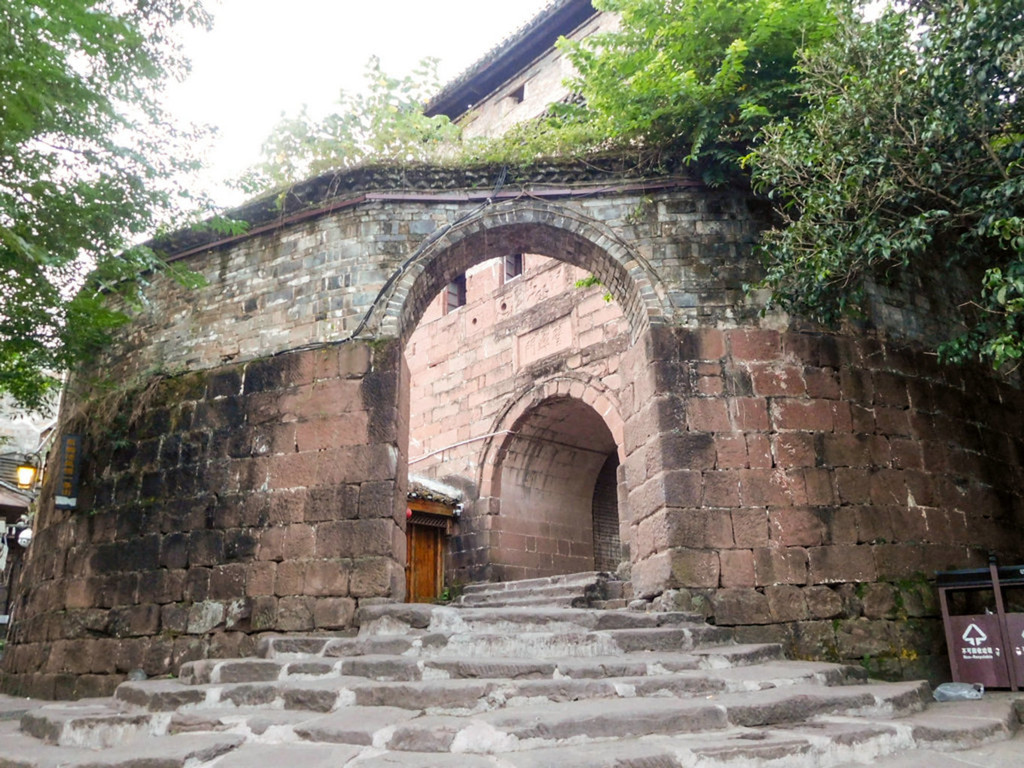 北门古城楼,亦始建于明朝。它与东门城楼由城墙相连,前 临清 澈的沱江,既有军事防御作用,又有城市防洪功能,虽几经战火,仍巍然耸立于沱江河岸。