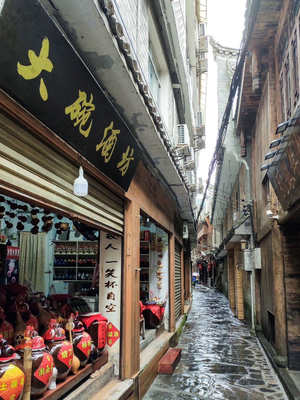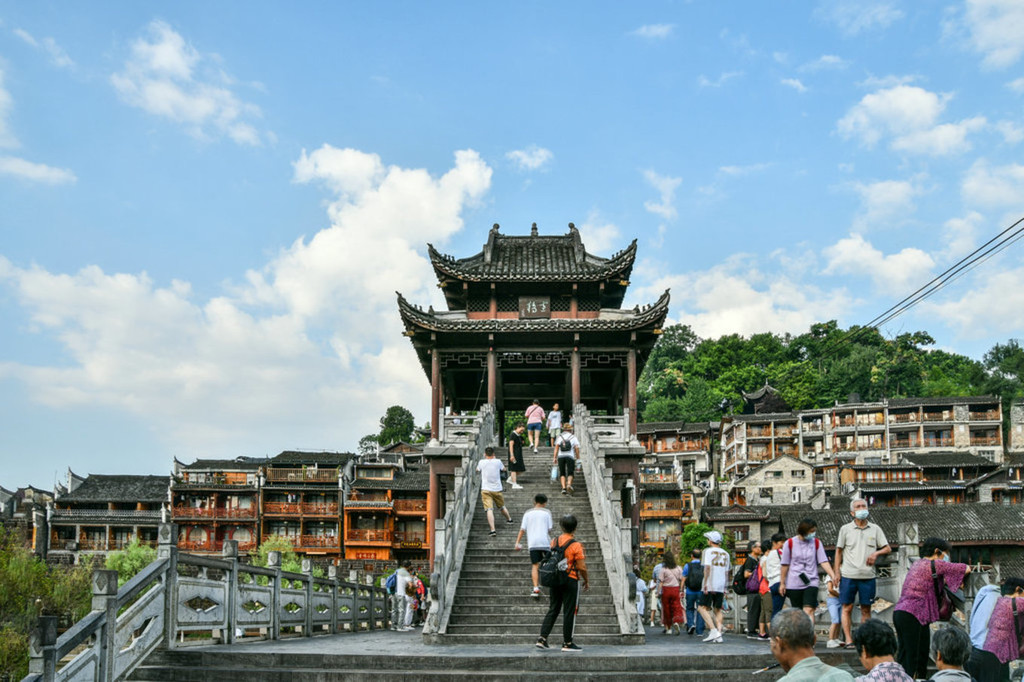 在东正街上一路前行,东正街宽仅3米,全长3000余米,纵向随势成线,横向交错铺砌。虽是一条狭长的街巷,但却是最繁华的商业街,街两旁店铺林立,它形成于元明时期,现存的是清式格局。 凤凰古城 以这条街为中轴,连接无数小巷,沟通全城。