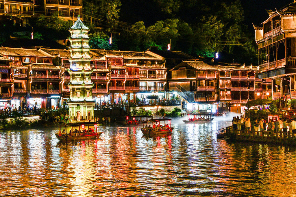 当你踏足 湘西 凤凰古镇的时候,一定要记得看那美丽的凤凰古镇夜景。夜色下,红灯笼和闪耀的灯光照射,让美丽的 凤凰古城 变得更加迷人,更加美丽。