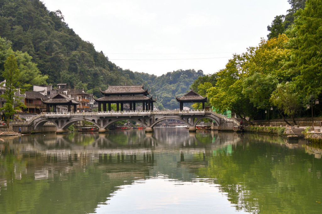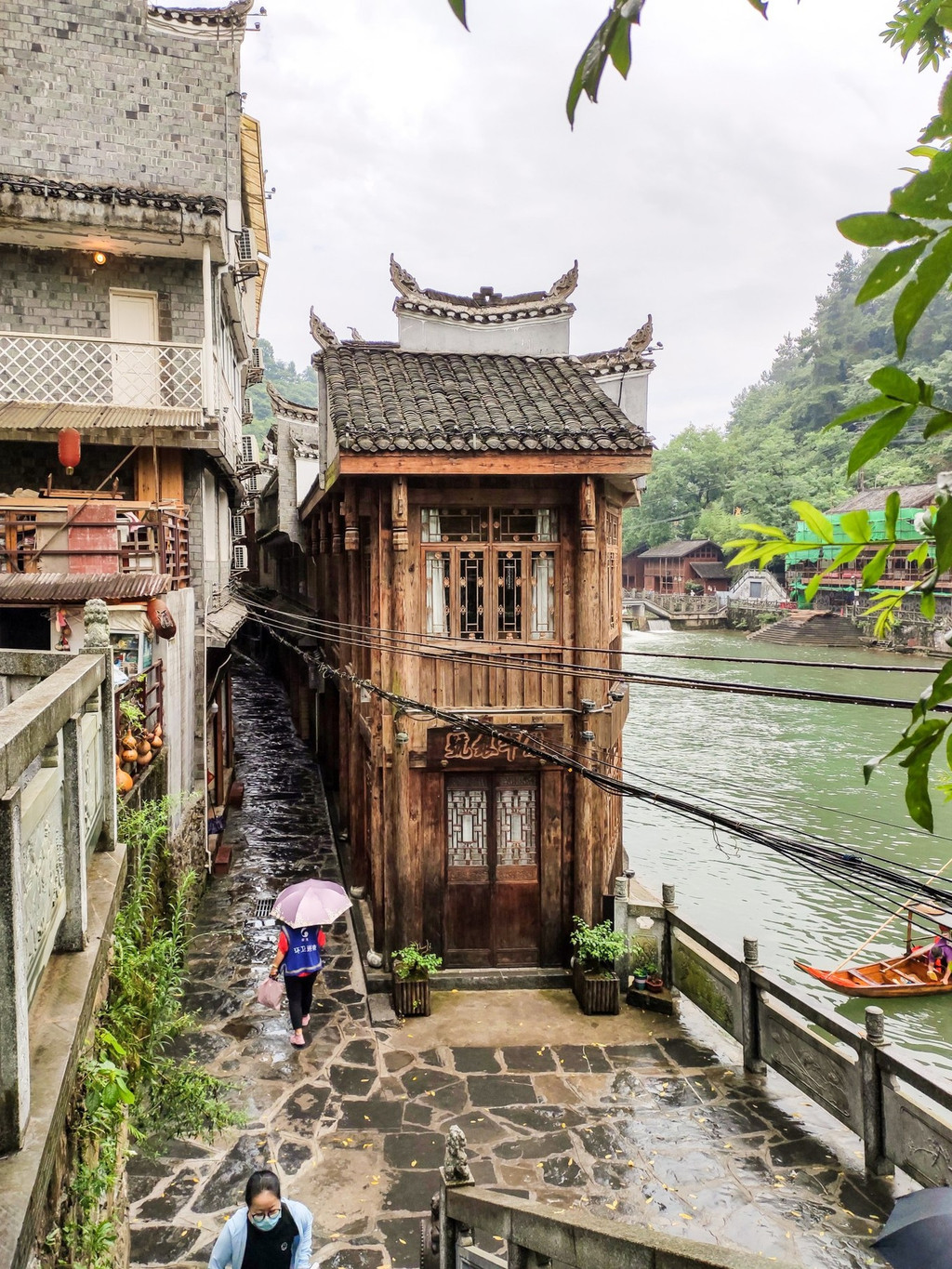 在雾桥上躲后,下午要跟团去 芙蓉镇 ,就沿着江边路过关帝庙,一直走到住宿