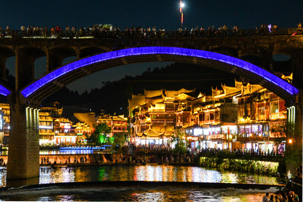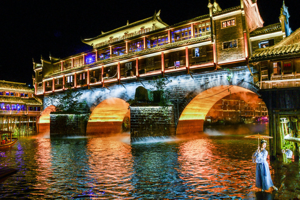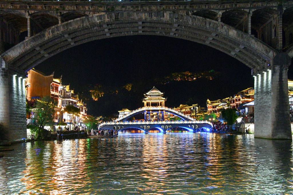 凤凰古城 的夜景,准确地说,是从虹桥那三个桥洞拉开序幕的