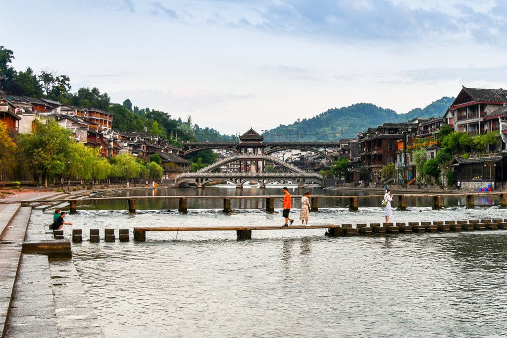 “雪桥”还是纵览沱江风光美景的好地方,登上雪桥,古朴的吊脚楼、临河两岸的客栈、酒吧,以及虹桥等美景一一尽收眼底。