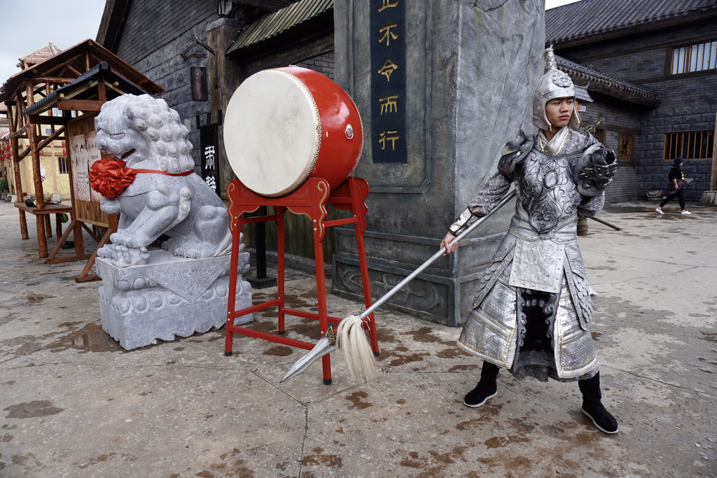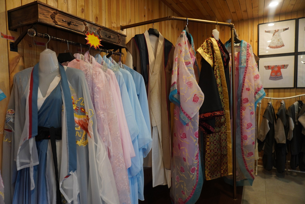 从购票大厅进去,右手边看见可以租赁服装的换装区,作为爱拍照的我当然不会错过换装,进入片场感十足的三国演义街区,挑战一个帅帅的女侠造型,小伙伴都直呼我英气十足~