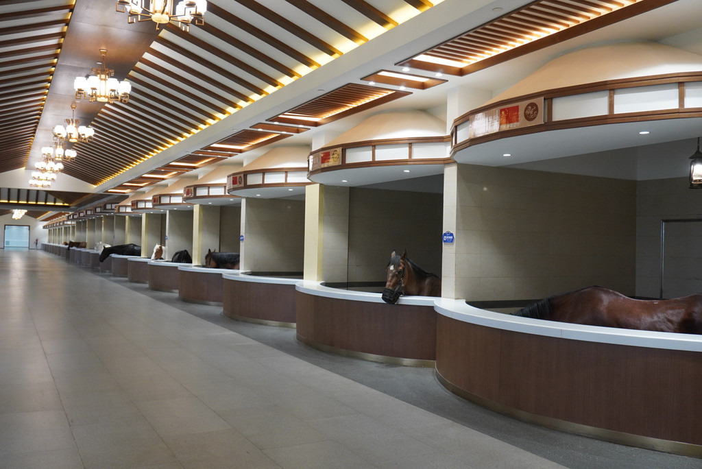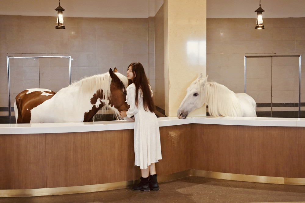 皇家马厩犹如欧洲小镇风格。低奢雅致的会所环境、干净舒适的马圈、宽敞明亮的场外基地,在里面近距离接触英俊名马和憨态可掬的小马驹,真是让人欢喜。在这里,有着众多来自中国和世界各地的纯种马,汗血宝马、蒙古马、阿拉伯马、波兰马、威尔士马,很多马都大有来头,在这里享受着皇室贵宾的待遇。