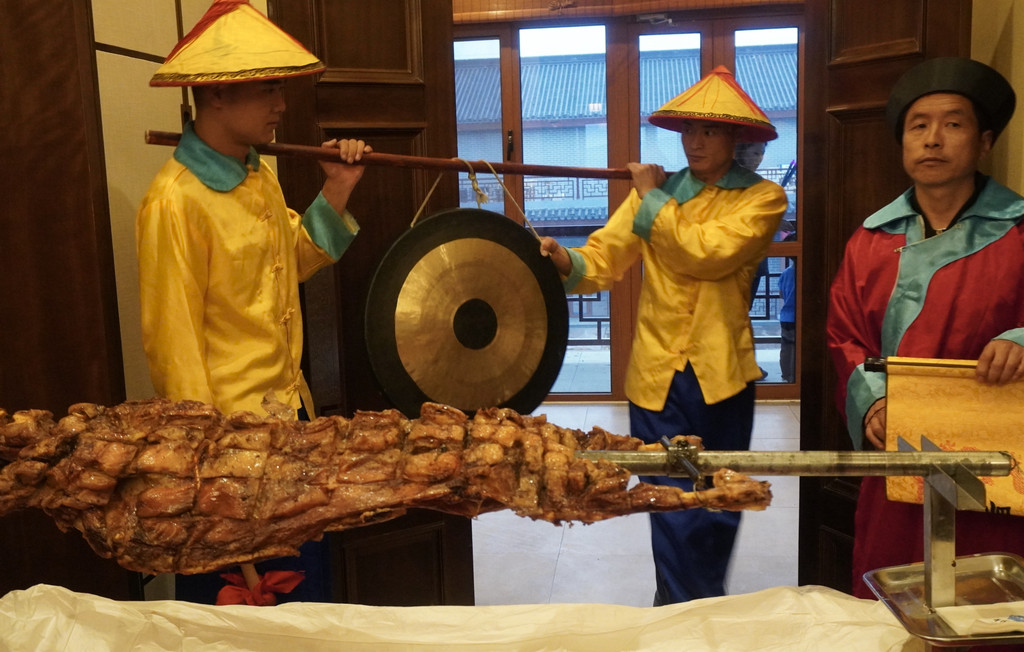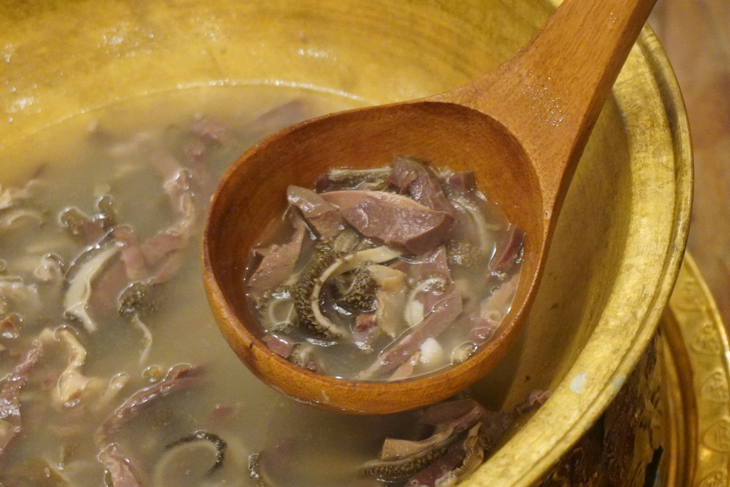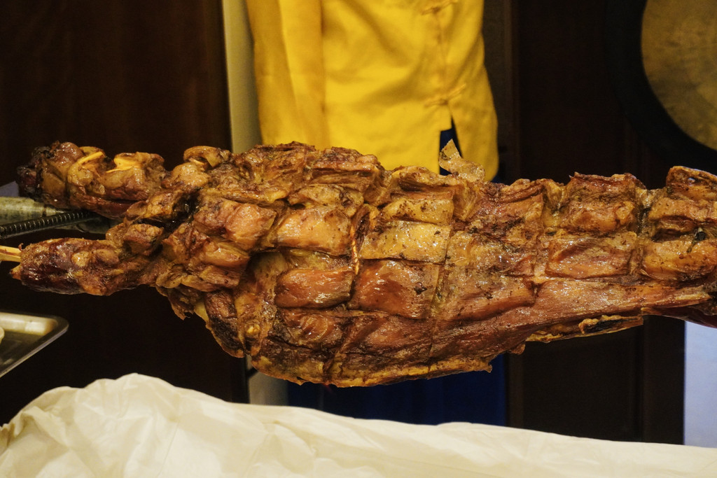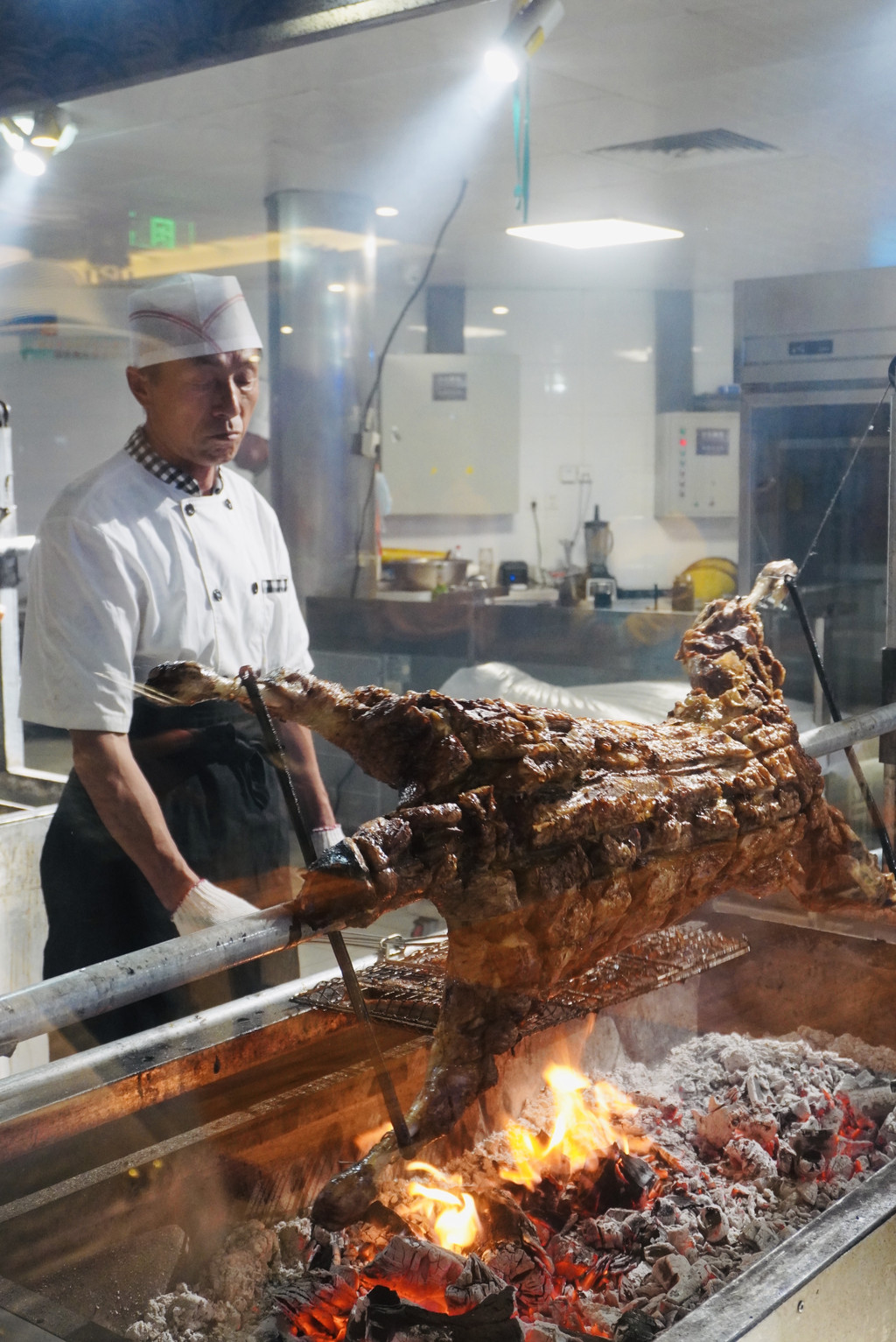 贝勒爷要进行隆重的开羊仪式,奉“圣旨”烤全羊的一羊六吃方法:一吃皮,二吃肉,三吃羊排,四吃羊腿,五吃肉串,六喝汤。大家围着烤羊先撕着皮吃,吃完再拿下去烤,吃肉吃羊排,有的香嫩,有的焦酥,吃的太过瘾了~这里还推出了烤全羊套餐,一共十八道菜还有一整只羊,特别适合家庭或者朋友聚会,一堆人吃肉喝酒大快朵颐,这才是草原的方式。