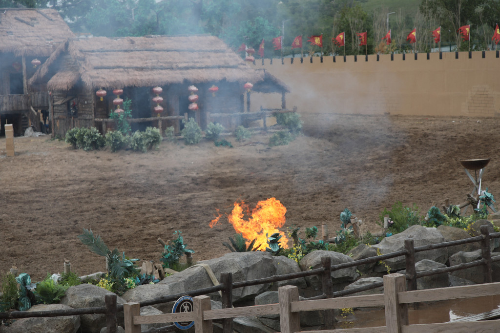 重头戏气势磅礴的实景大型表演《战神赵子龙》,全方位体验与感受古装穿越的魅力~它讲述赵子龙将军单骑救主的传奇故事。这个表演的门票包含在景区200元成人票中,每天下午在室外剧场表演,有时会天气原因停演,游客一定要及时关注天气信息哦。