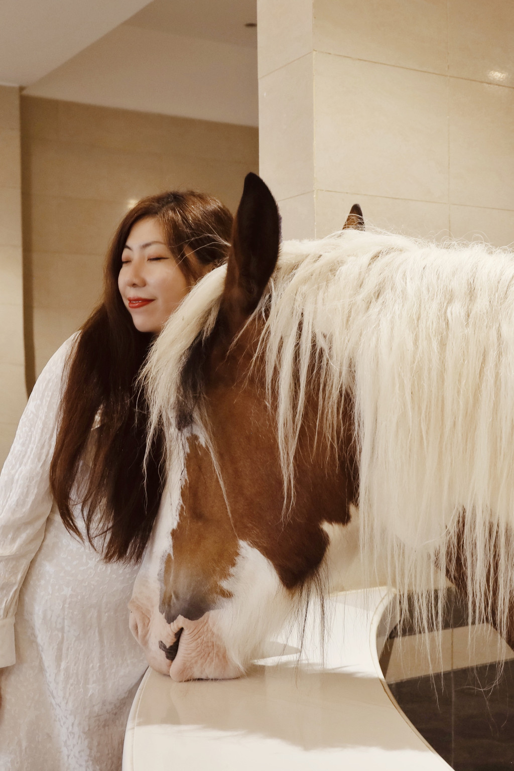 每匹马都有自己的名字,在这里,可以在专业的驯马师的指导下骑马与参观,可惜我们去的时候外面下雨,没有将马牵到院里骑行,但是还是跟驯马师学习询问骑马需要的专业知识。首先要穿着骑马装备四件套:马甲、头盔、手套和脚套。上马后保持上身直立坐挺,目视平行前方,手抓紧缰绳。先熟悉马走路的频率再开始适应马跑起来的节奏,随着马身“压浪”奔跑。希望下次可以有机会骑马,这次只能在室内与他们亲密接触了。