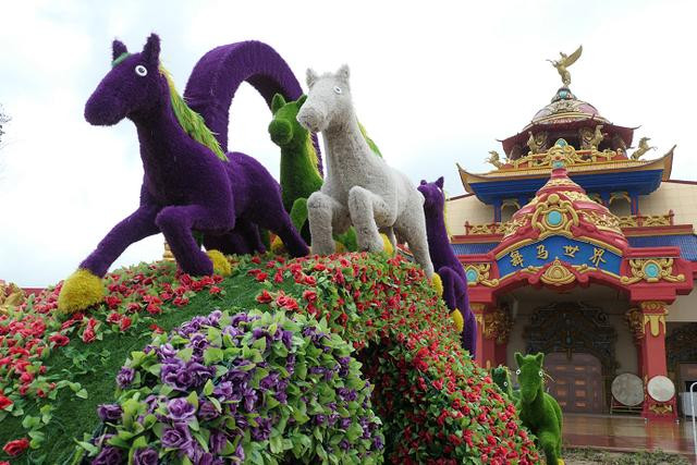 每天早上九点半在舞马世界大门前开启盛大的迎宾入园仪式,跟随着音乐响起,装扮盛装的舞者们瞬间点燃现场,游客们很快跟随进入状态。