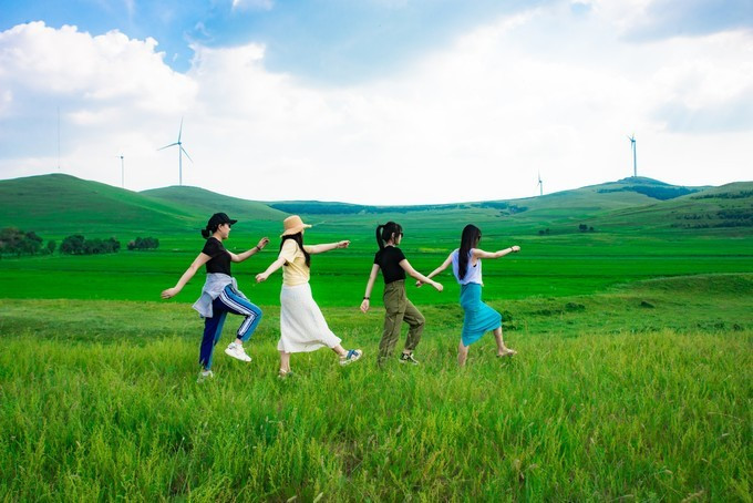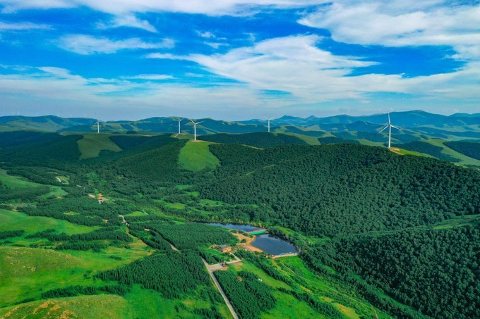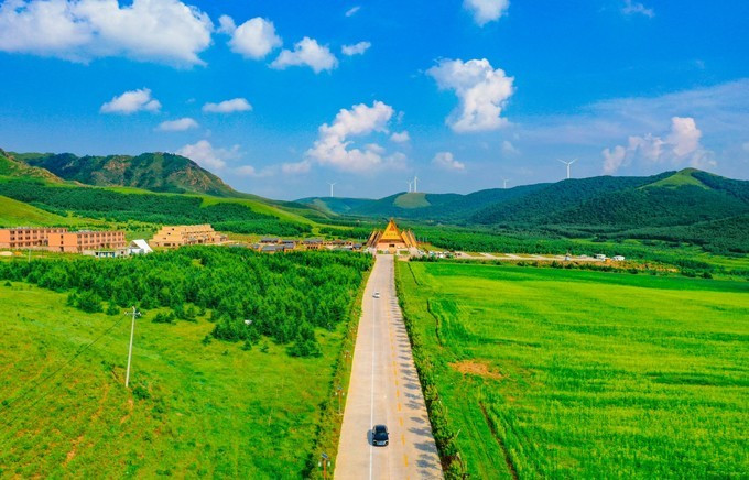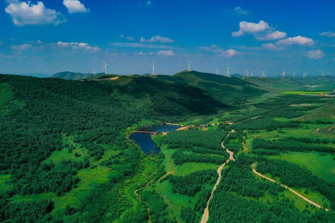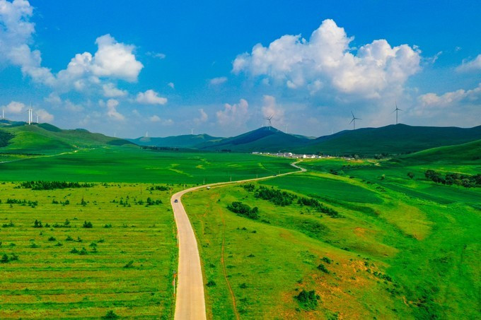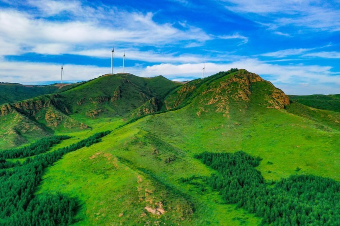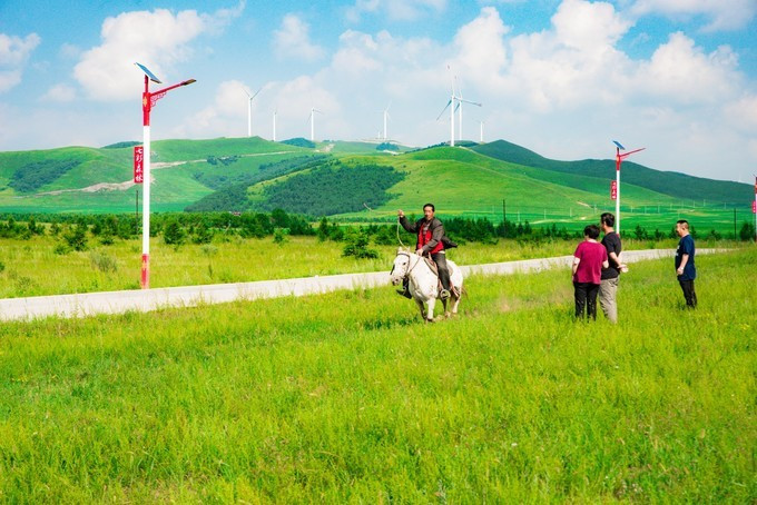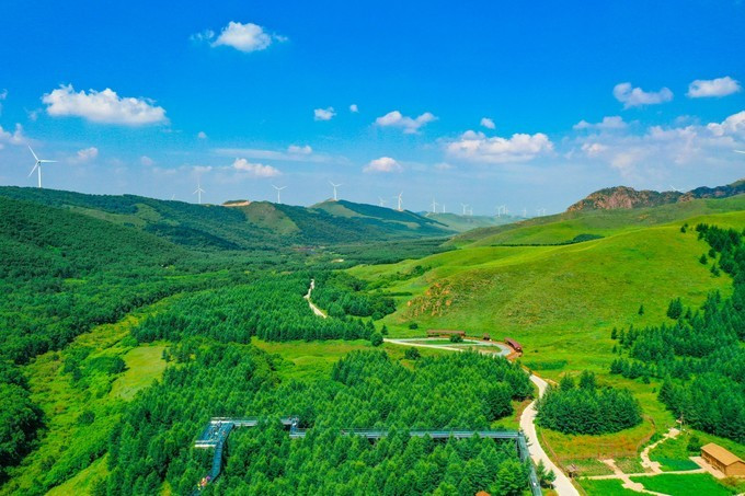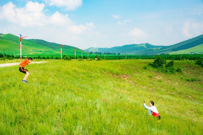 办理完入住已经是中午12点多,吃过了七彩森林特色的坝上美食,在酒店休息了2个小时,毕竟起了一个大早,然后自驾了7个小时,整理下精神状态,下午正式开始坝上草原的清凉之旅。到达景区大门之前,入口有一条长长的水泥路,如果来时你没有被瞌睡所打败,就一定能看到 草原天路 独有的美妙。天高地阔,草甸、树林、山坡以及旋转的发电风车,组成了一幅完整绝美的草原画册,每走一段路都有不同的景色,让你忍不住停下车来,融入了旖旎秀美的一页又一页。【多彩森林之夜】