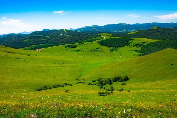 “连雨不知春去,一晴方觉是夏。”送别了春天,夏接踵而至,裹挟着不那么让人欢喜的火热,来的让人措手不及。七月大暑依旧是骄阳似火。当你还在睡梦之中,太阳就早早地钻了出来,到了中午阳光更像是烈火一样,挂在头上无情的炙烤。让人无时无刻不想逃离暑气热浪的包围,期待一场夏日清凉的惊喜。承德 坝上草原有美丽的七彩森林,16°的夏日清凉,让不少的人趋之若鹜,我也是其中之一,一路自驾,心花怒放。夏天的七彩森林,举目都是满眼的绿色,成片的绿草甸,茂密的白桦林,风慢慢吹过,夹杂着花的香味,空气里满是幸福的味道。