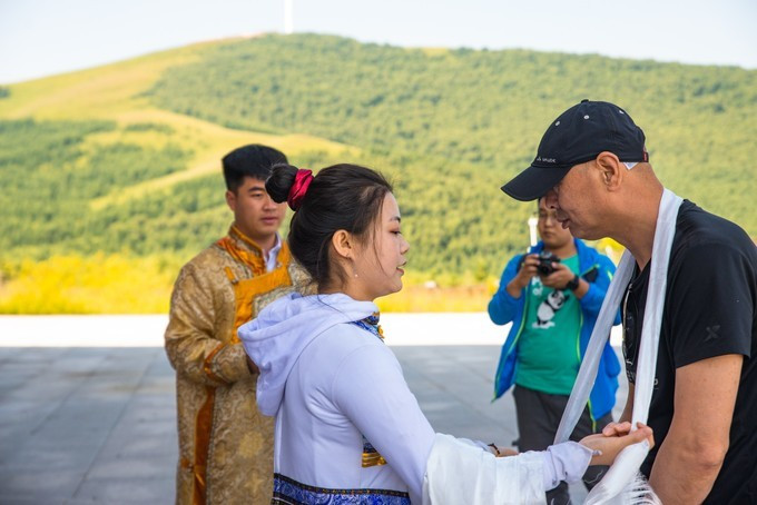 第二天的行程满值得期待,早上景区大门开启,景区入口已经开始了欢迎仪式,俊男靓女身着民族服饰,用特有的仪式欢迎远道而来的客人,献哈达、下马酒,美好的祝愿从现在开始。