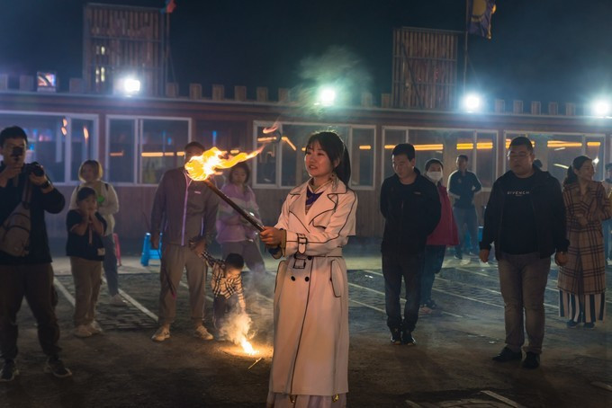 晚餐过后,别着急休息,安达蒙餐厅的广场上还有一场娱乐演出,不少的游客都买了烟花,在广场上燃放,大有过节的气氛。节目都很精彩,特色的草原民族舞蹈,悠扬的草原调调,还有幽默趣味十足的小品演绎,把饭后困倦驱走,吊起来了精神头。节目结束,广场的中央早已架好了篝火,随着火苗越来越高,火光冲天,广场上所有的人,都手拉着手围成一圈,载歌载舞,享受草原最凉爽的夏天,期盼美好的日子红红火火,越过越旺。烟花升起,在漆黑的夜空炸出了浪漫的火花,洋洋洒洒,美过天上的星星,稍纵即逝的美丽,总是让人难忘。尾
