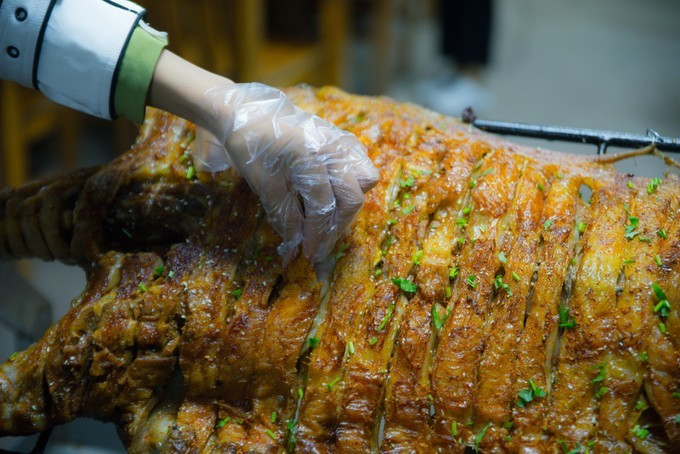 晚上一场盛大的狂欢正在酝酿,话说出门旅行,满足眼睛也不能委屈了胃。烤全羊是草原最具代表的美食之一,草原上的羊肉鲜嫩香醇,并且没有那种刺鼻的羊膻味,改刀上架,刷上秘制的酱料,在烤炉里均匀的炙烤,滋滋的冒着油花,香气四溢。先吃皮、再吃肉、在啃羊排......一层一层,味道各有不同,吃肉最过瘾,吃皮最香脆。