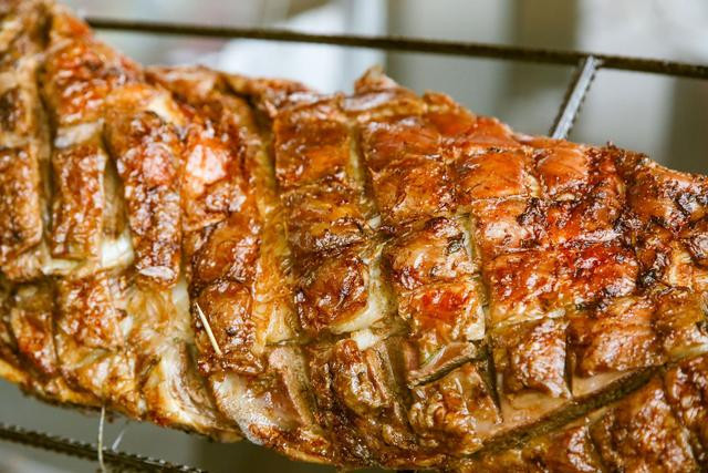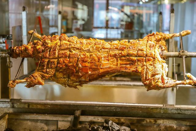 来了草原玩,少不了要吃上一顿烤全羊。来烤羊美食街吃到嗨~我们去的天下第一烤羊餐厅,刚出炉的羊香气四溢,表皮还会发出滋滋的油脂燃烧声。我本来以为吃烤全羊就是大家上去撕吧撕吧就吃了,到了这才知道,原来吃烤全羊也是有讲究的,要一羊六吃:一吃皮,二吃肉,三吃排,四吃串,五吃蝎,六喝汤。据说此羊是选自锡林郭勒一种叫蒙鹿的黑头羔羊。吃天然青草,喝天然溪水,长期放养,肉质十分紧实适合烧烤。师傅在烤的时候会不停地刷上用二十种调料、十一种中草药、九种调味品秘制的酱料,让羊肉从外到内充分入味。恨不得连自己的舌头都咽下去。